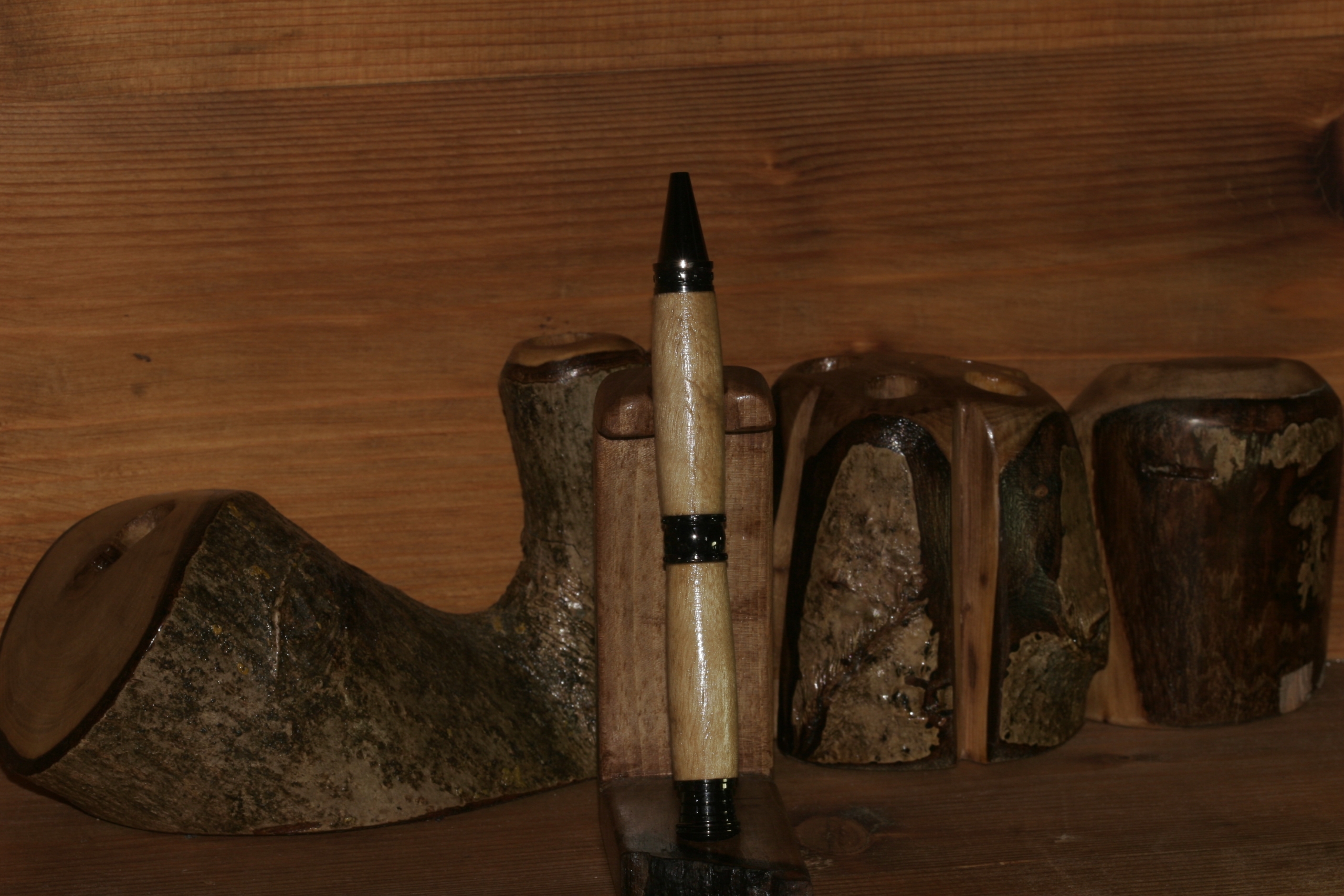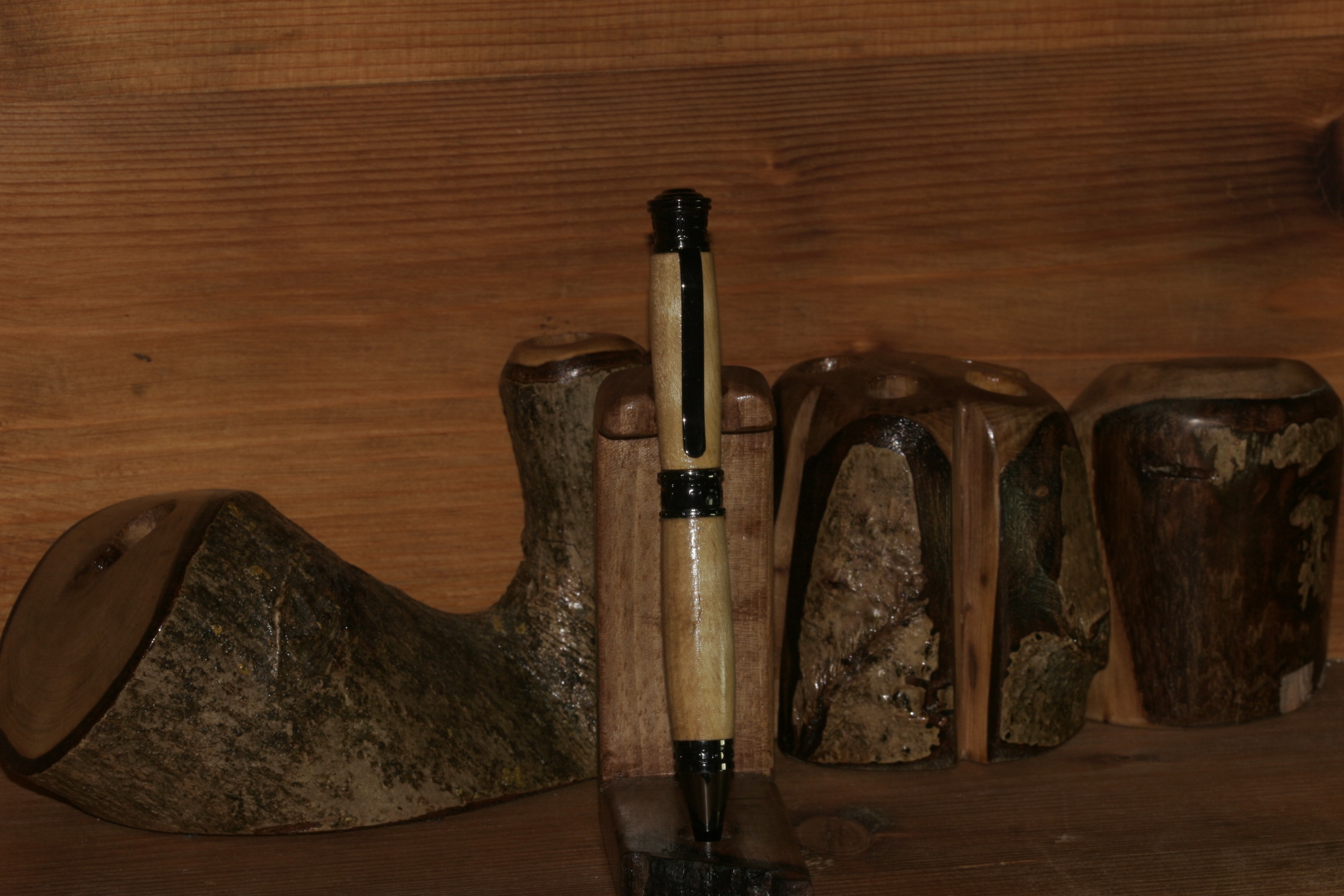 Handgedrechselter Kugelschreiber aus Walnuss.