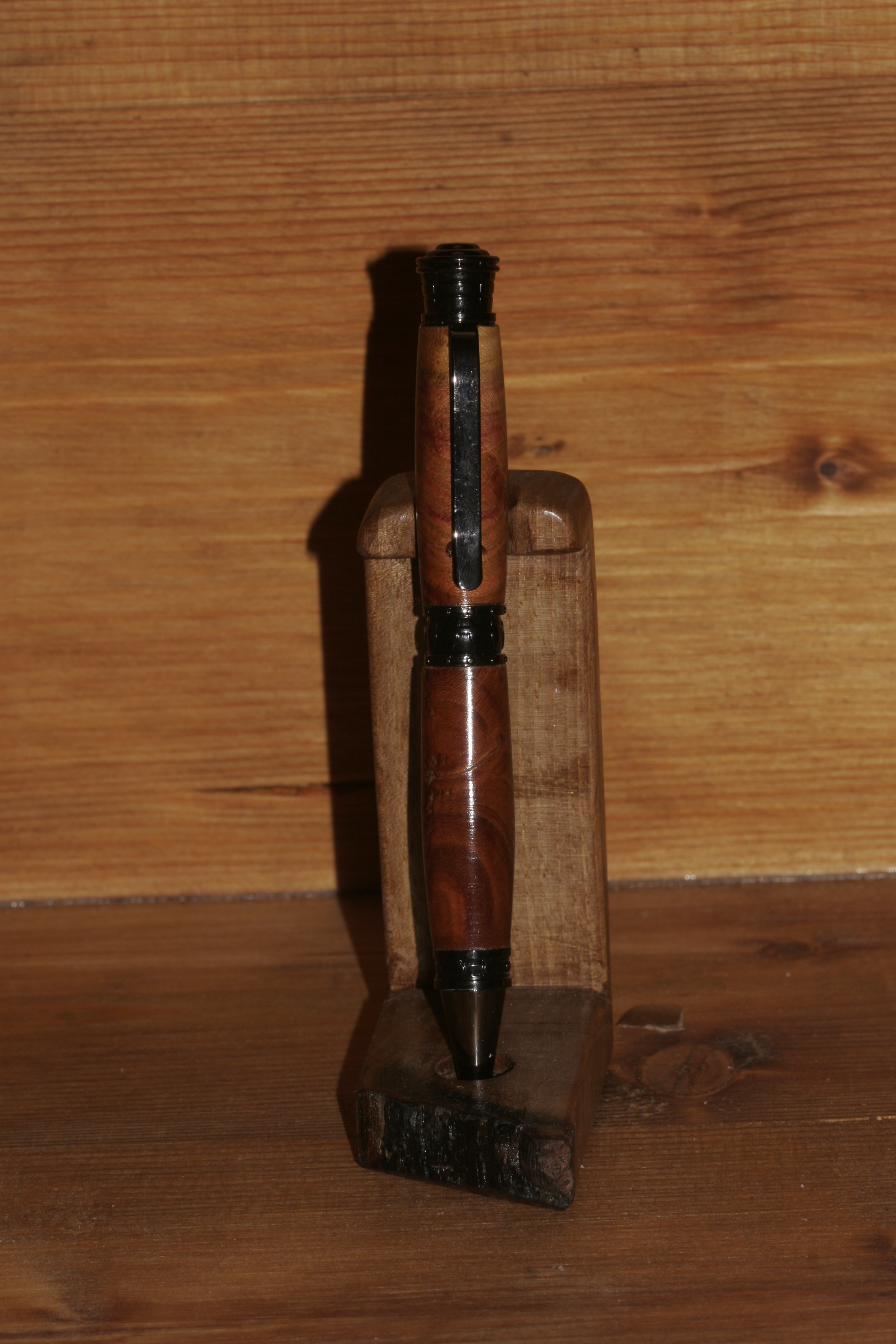 Handgedrechselter Kugelschreiber aus Zwetschgenholz.