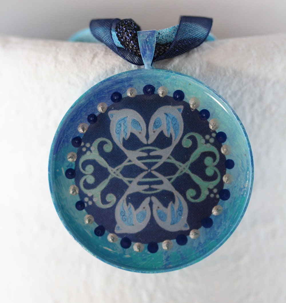 Dies ist ein kunsthandwerklicher Artikel im Design "DolphinLove" meiner Design Serie „Dolphins & Doves“.