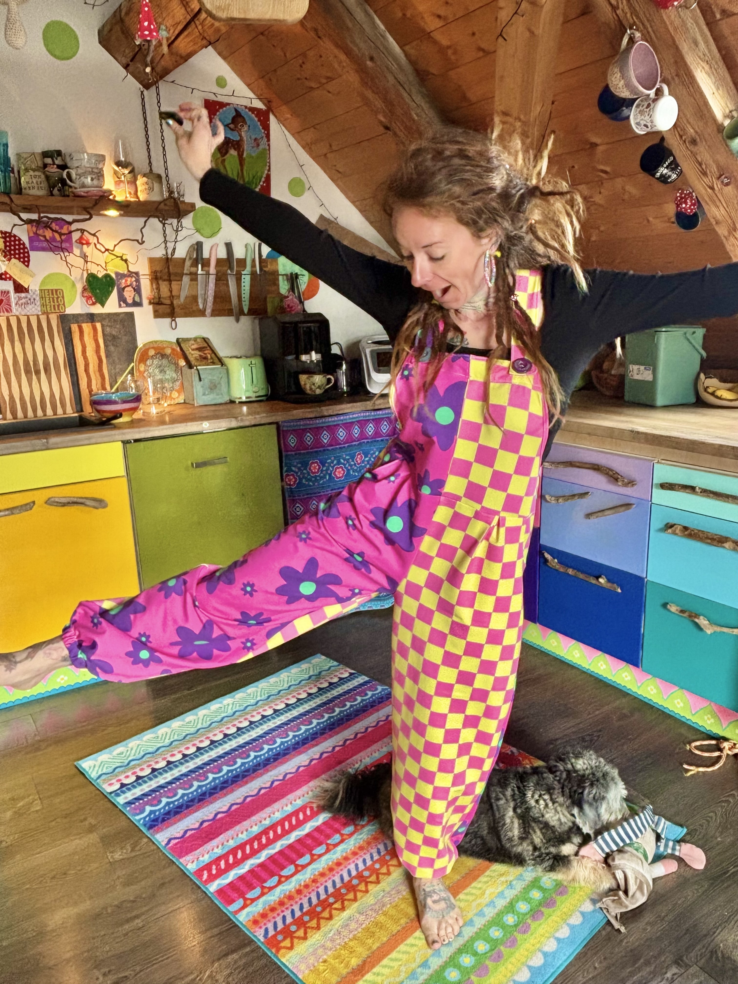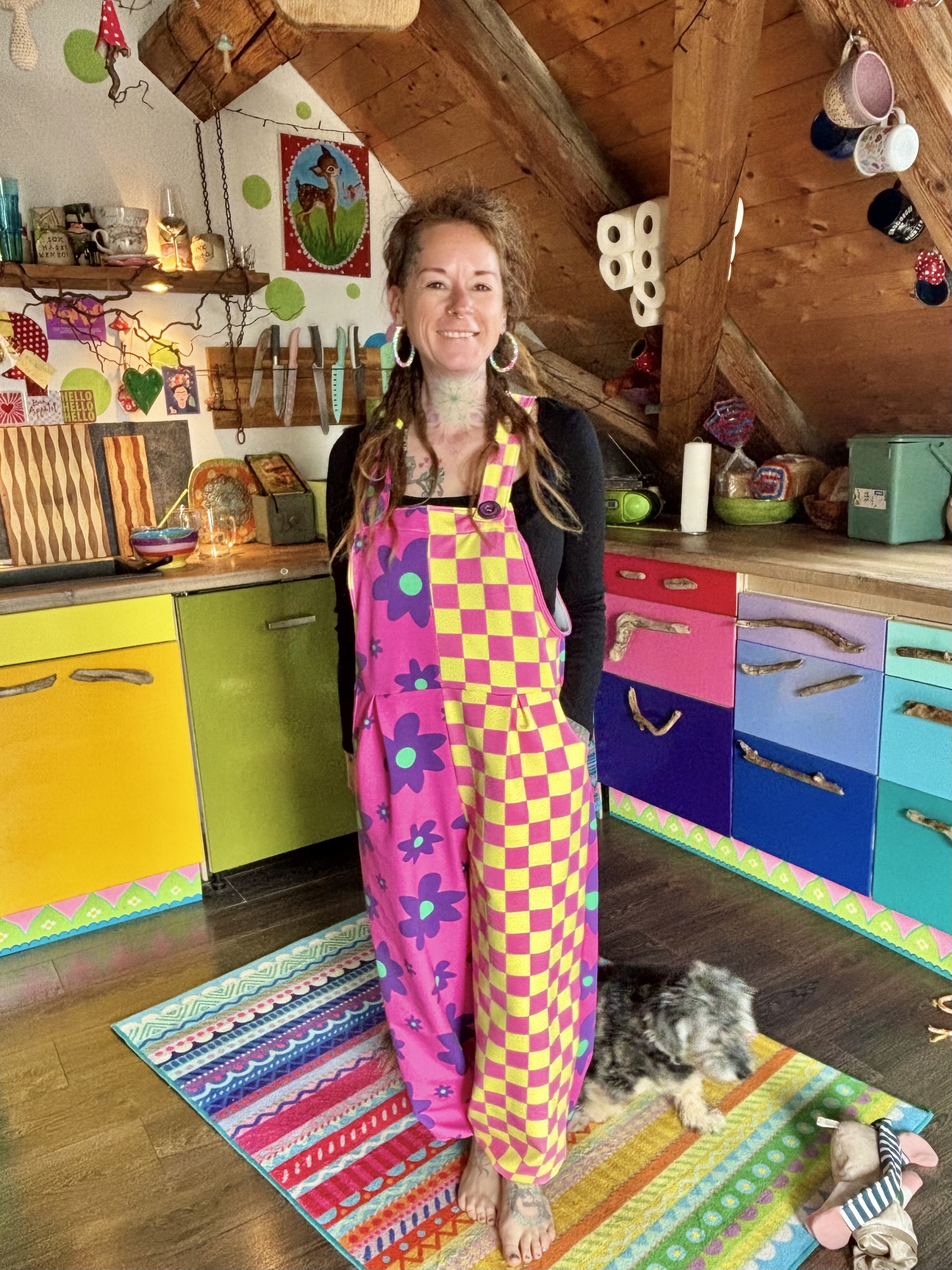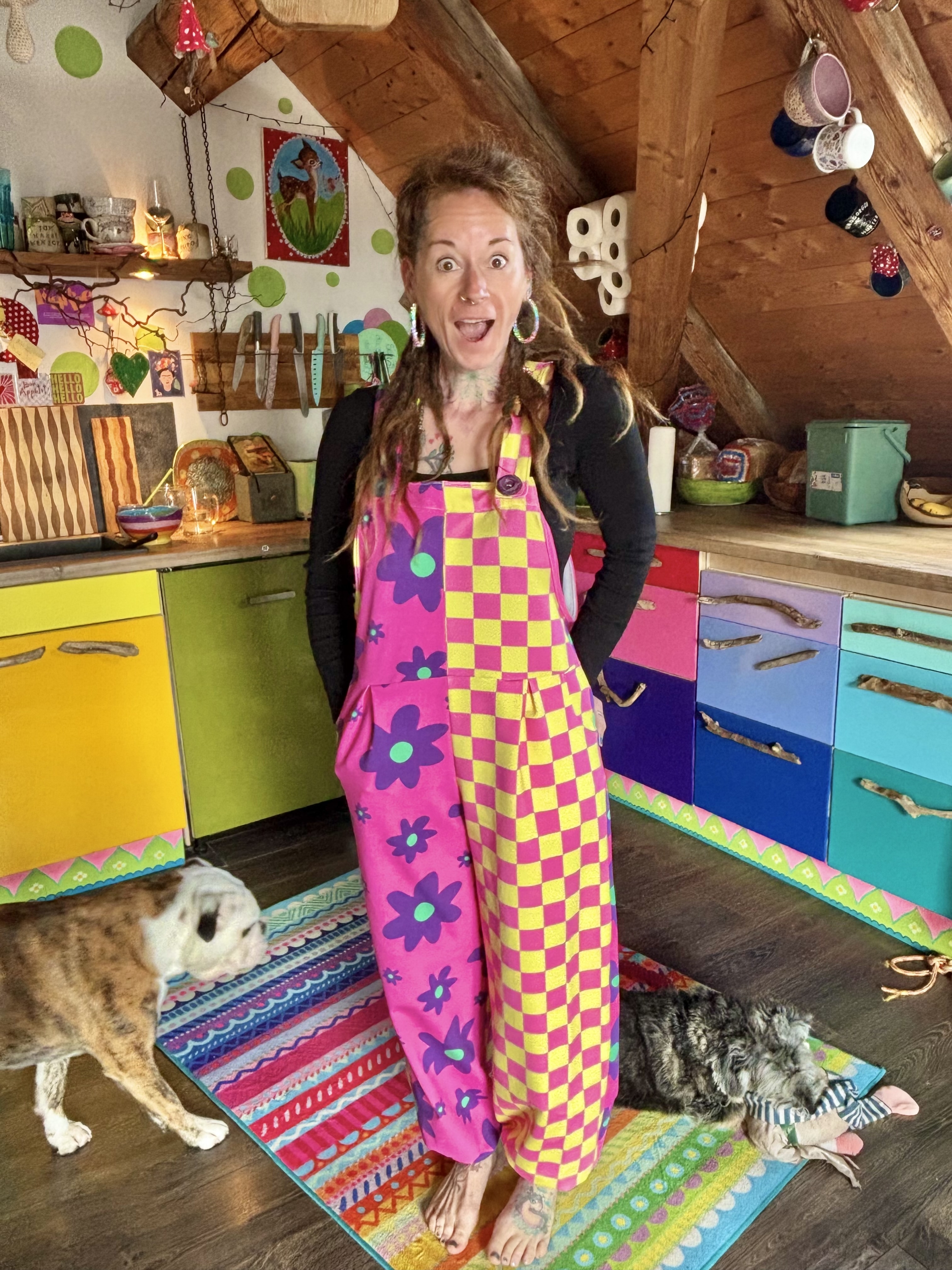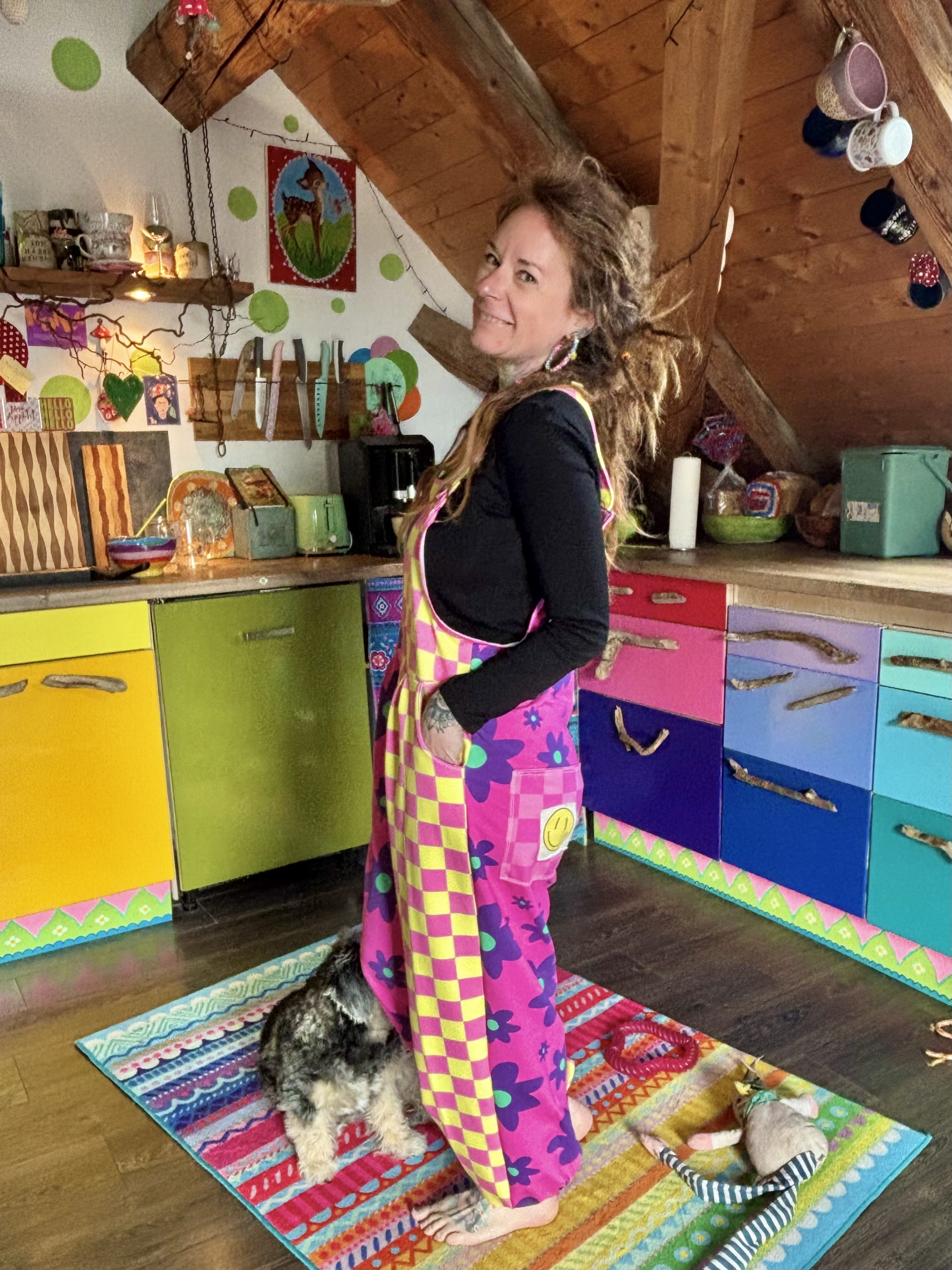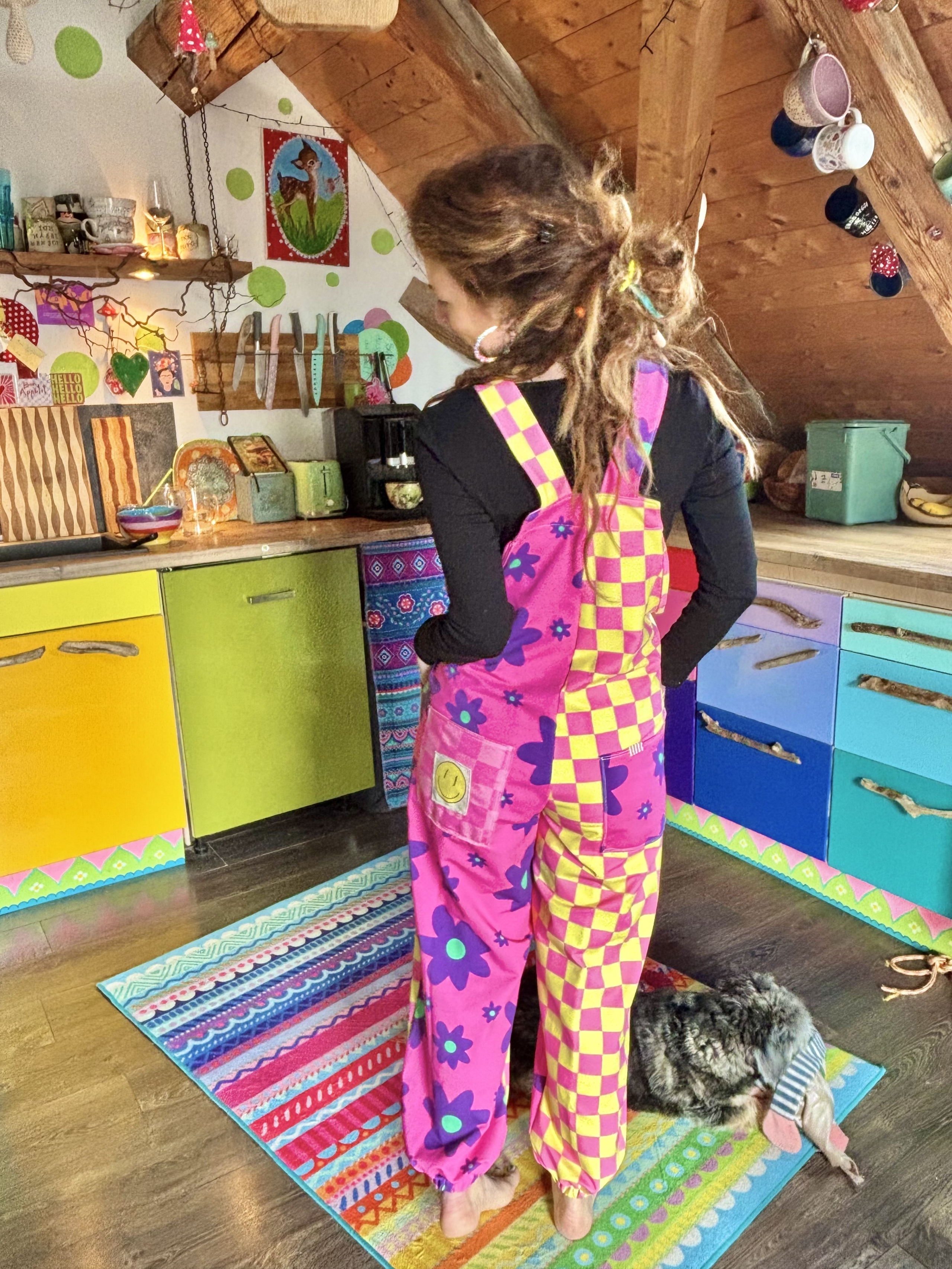 Mit viel Liebe genähte Latzhose aus French Terry (Schnitt von Bonny & Buttermilk „Penny“) mit Fakeknöpfen.