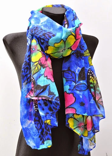Material: 20% Baumwolle und 80% Kunstfaser mit Elasthan in leuchtenden Frühlingsfarben, sehr weich, kuschelig und angenehm zu tragen.Maß: 180 x 120 cm.