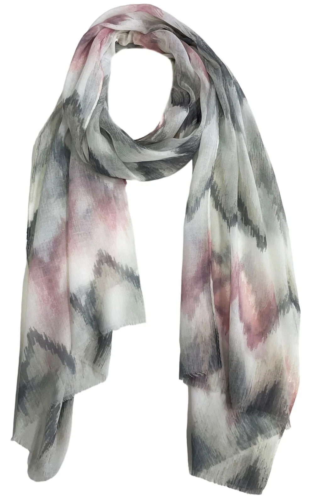 Sie kaufen einen leichten Damen-Sommer-Schal Motiv "Zacken" für Frühjahr, Sommer und Strand, neu, ungetragen. Farbe: grau-bunt.