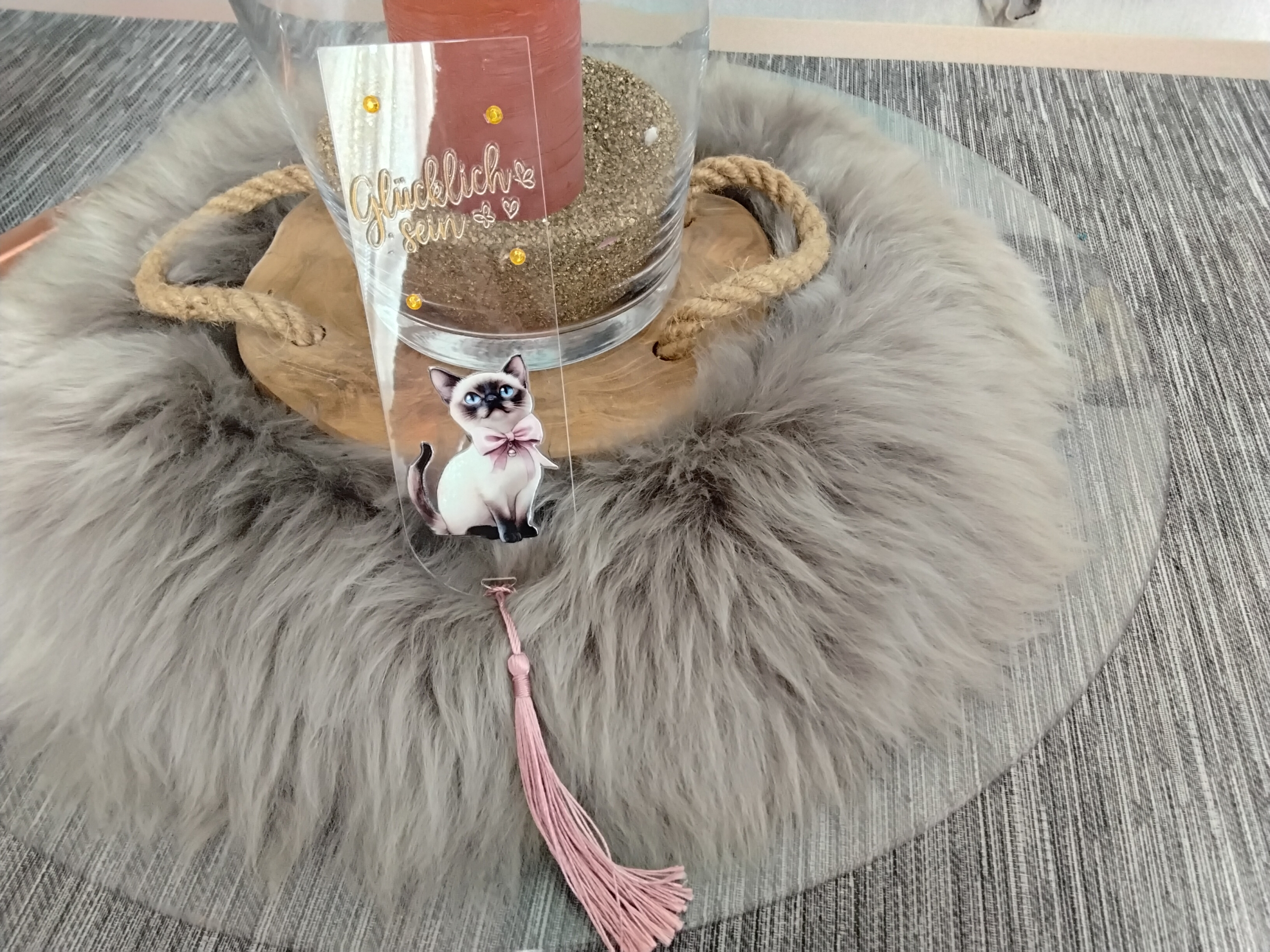 Acryl-Lesezeichen mit schönem Spruch mit farblich passender Quaste.