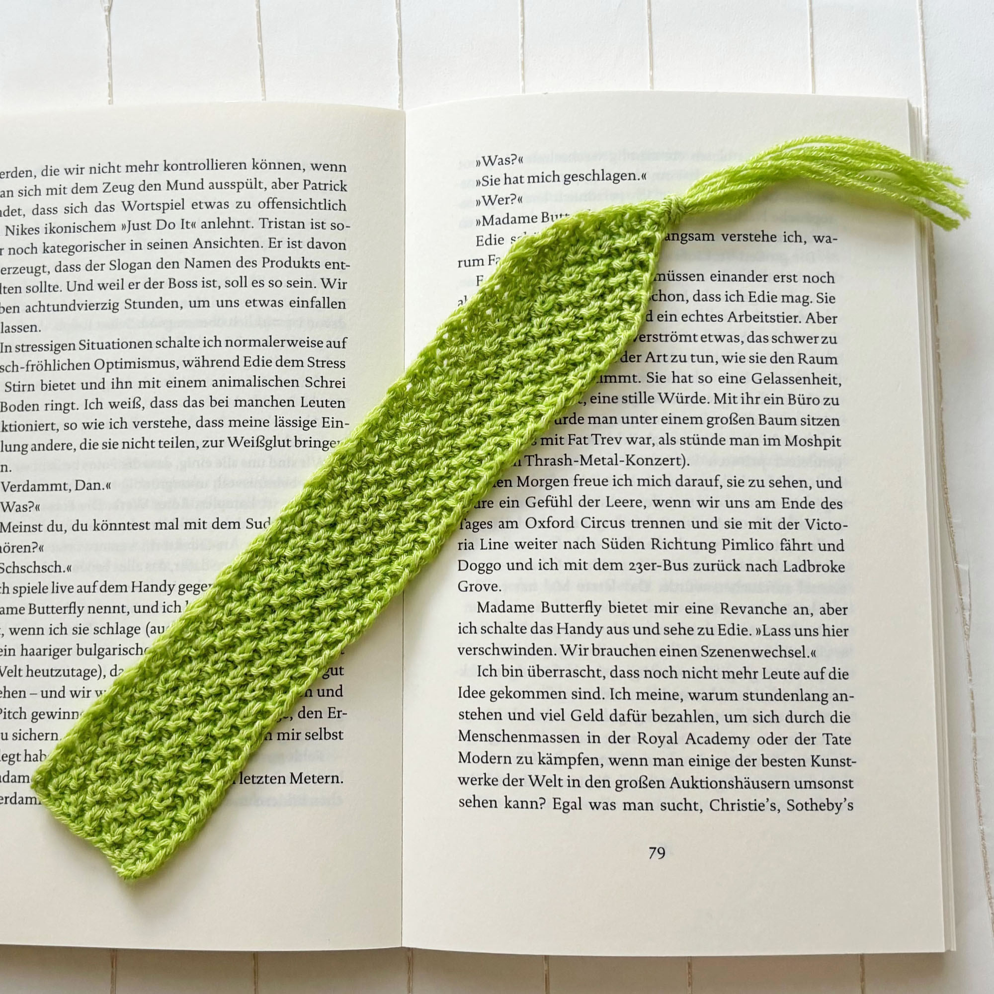 - Grüne Lesezeichen aus dünnem Garn handgestrickt