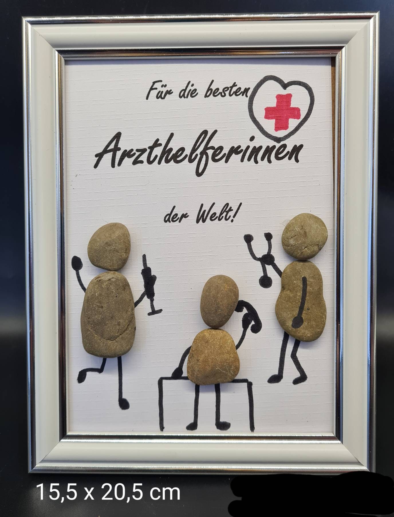 Liebevoll handgefertigtes Steinbild als Geschenk um Danke an die Arzthelferinnen zu sagen.