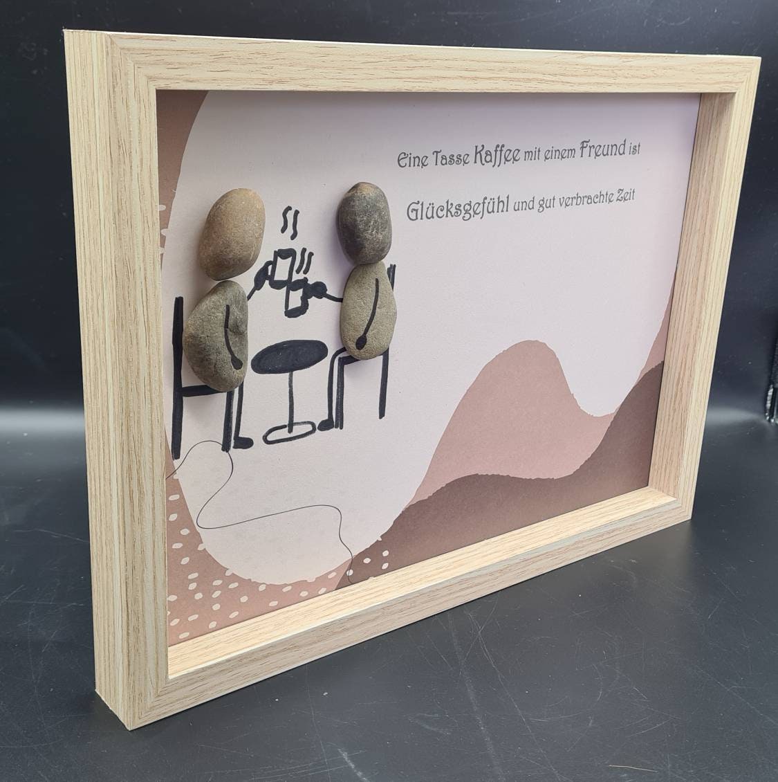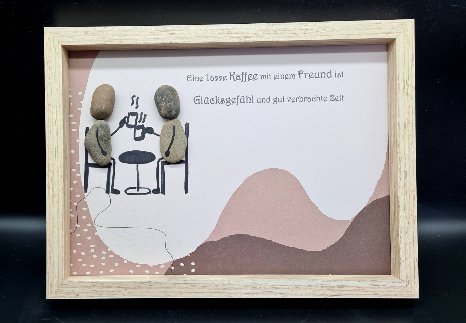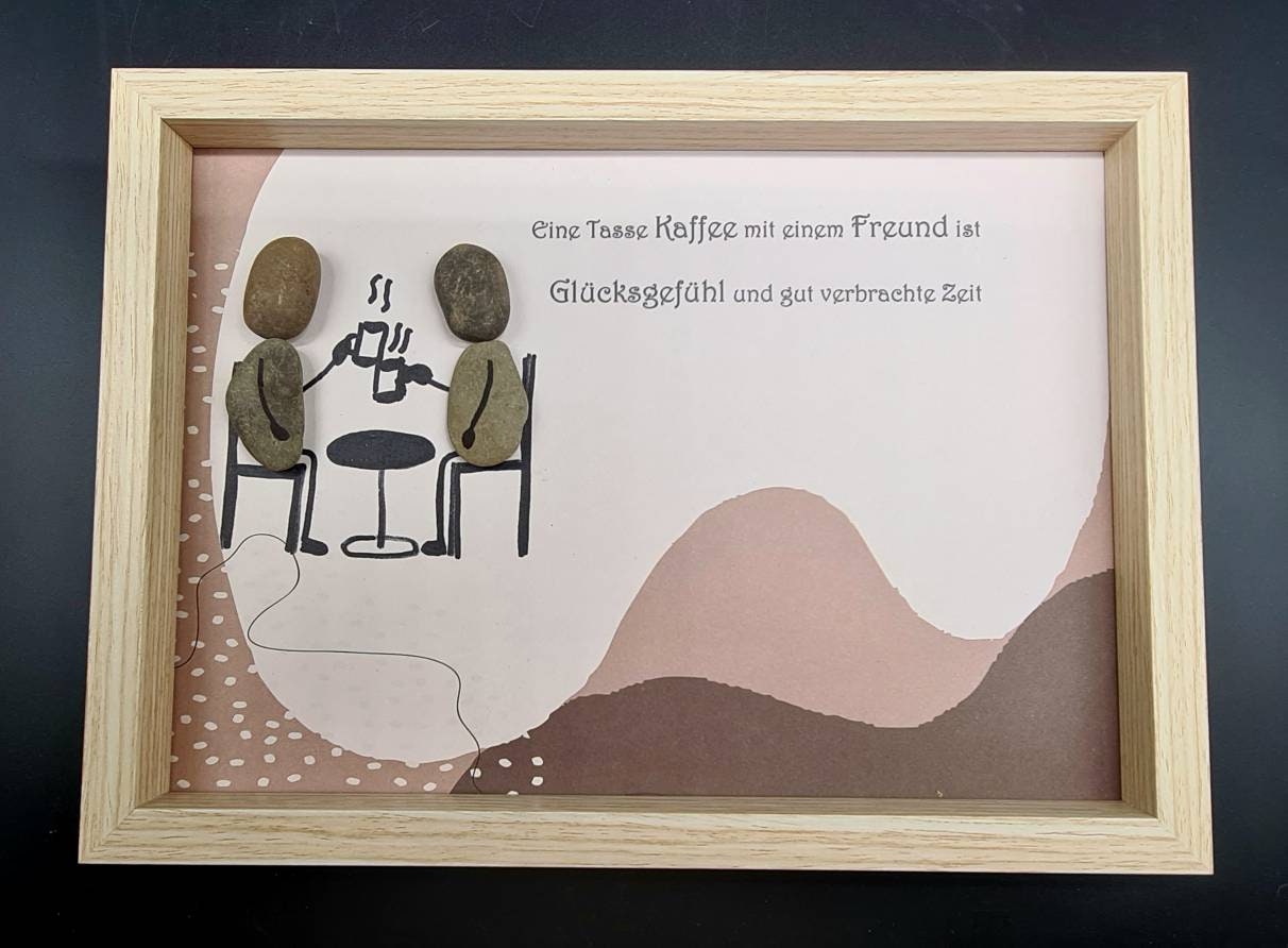 Liebevoll handgefertigtes Steinbild als Geschenk für beste Freunde die gerne Kaffee zusammen trinken.
