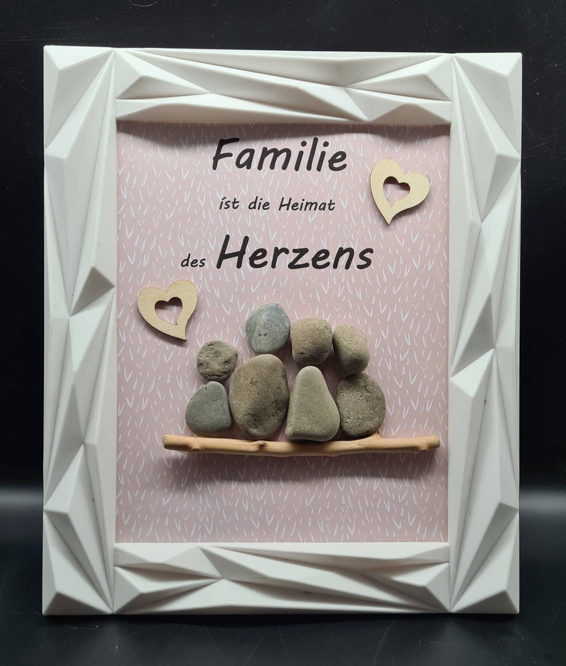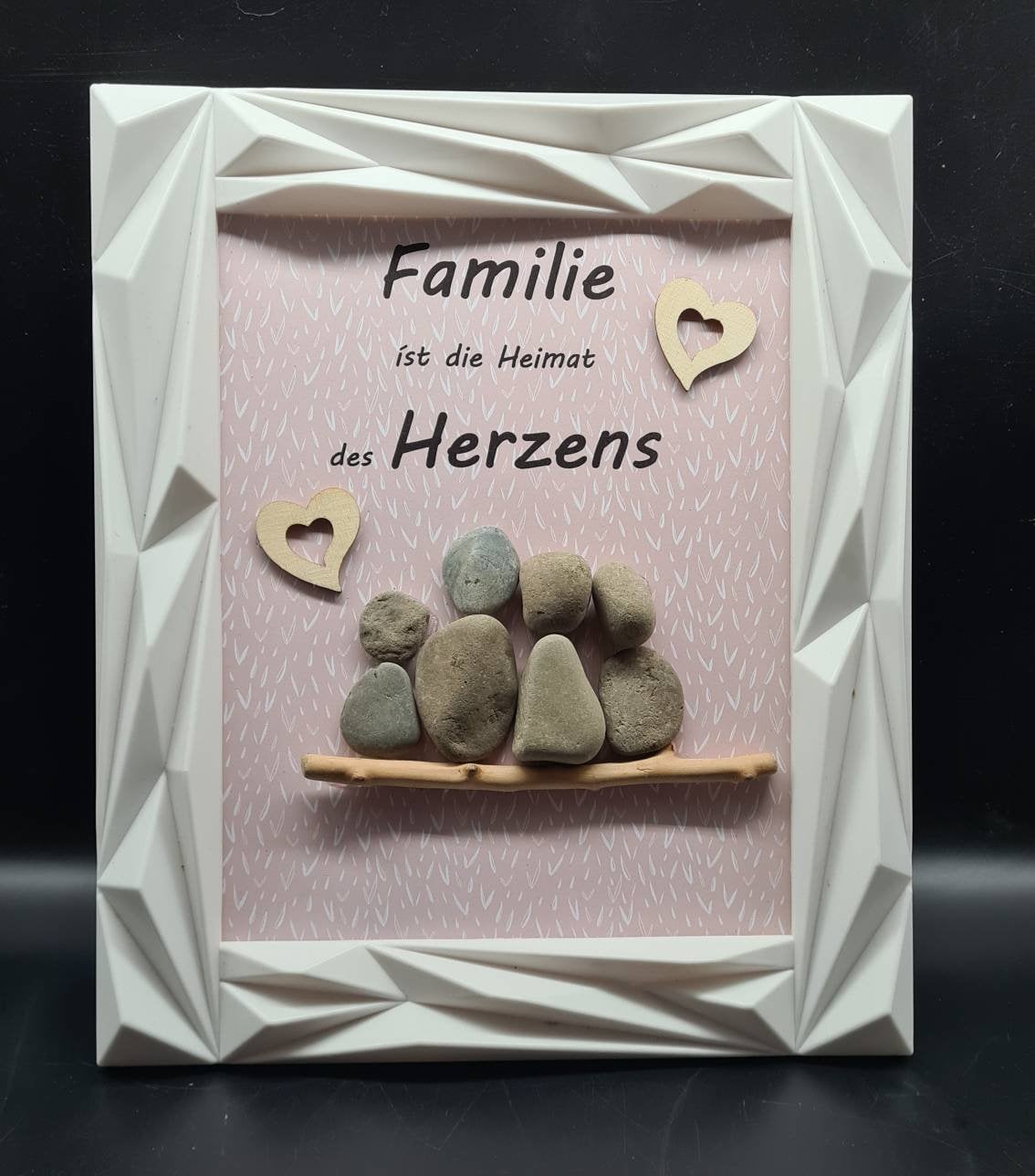 Liebevoll handgefertigtes Steinbild als Geschenk für die Familie, denn die ist die Heimat des Herzens.