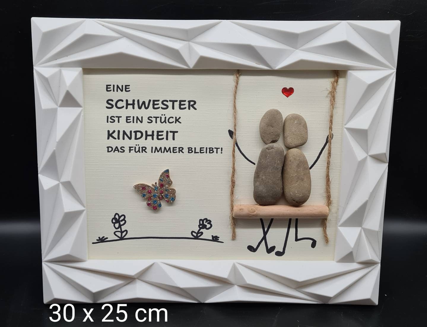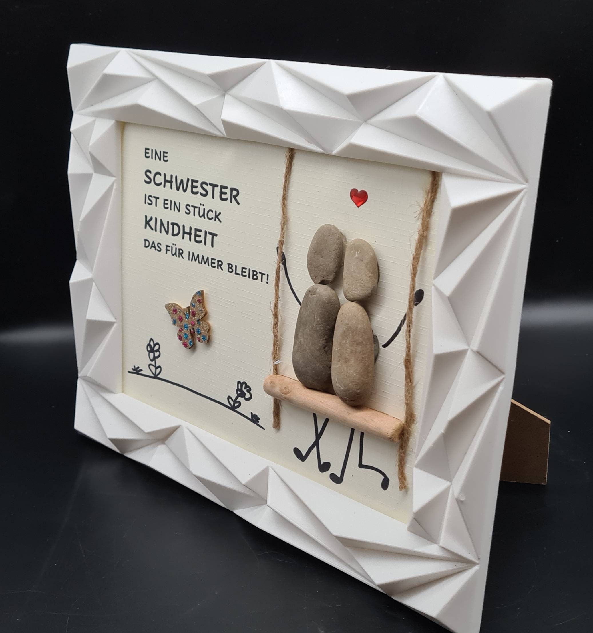 Liebevoll handgefertigtes Steinbild als Geschenk für die Liebe Schwester.