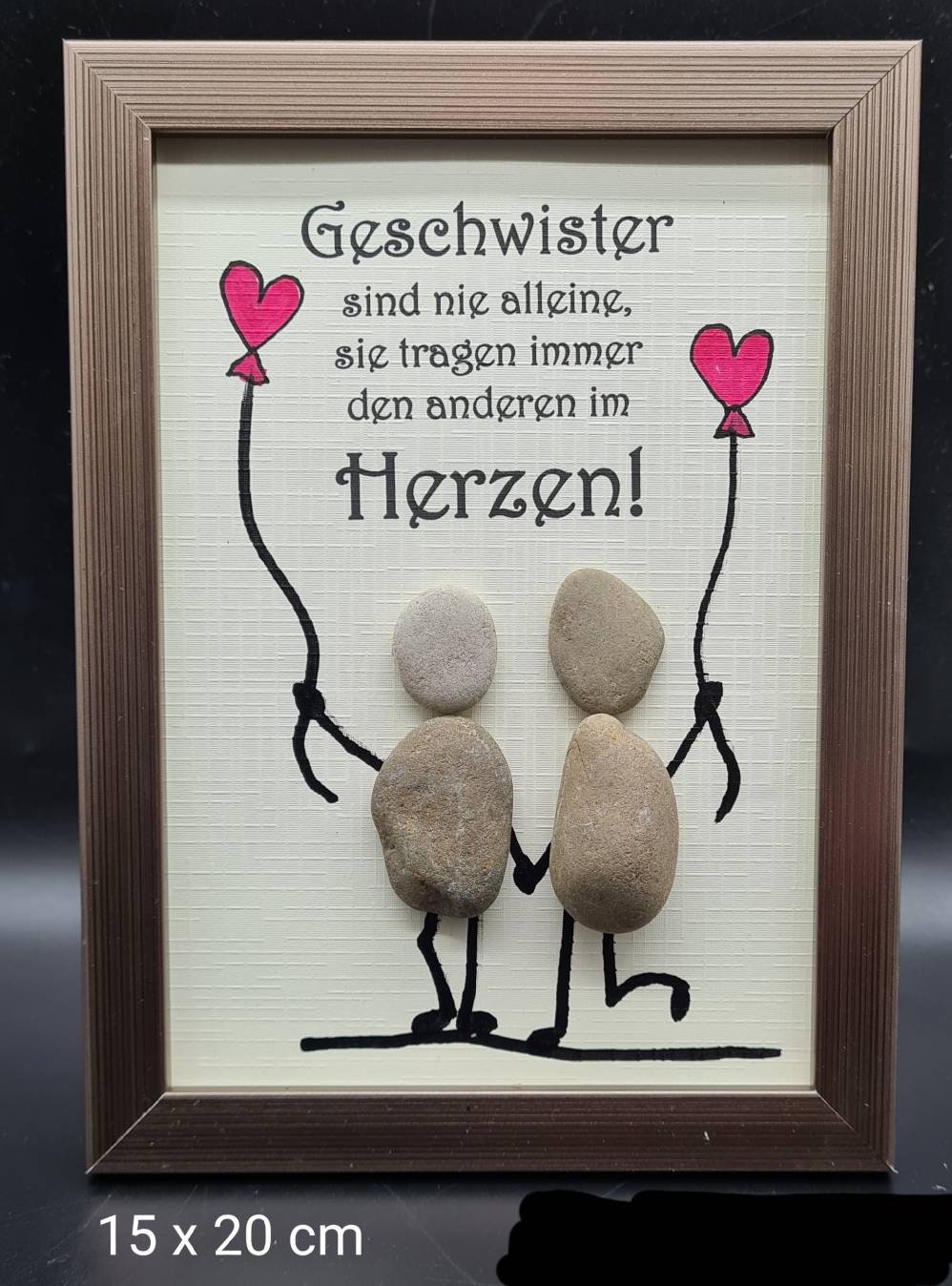Liebevoll handgefertigtes Steinbild als Geschenk für die Schwester oder den Bruder.