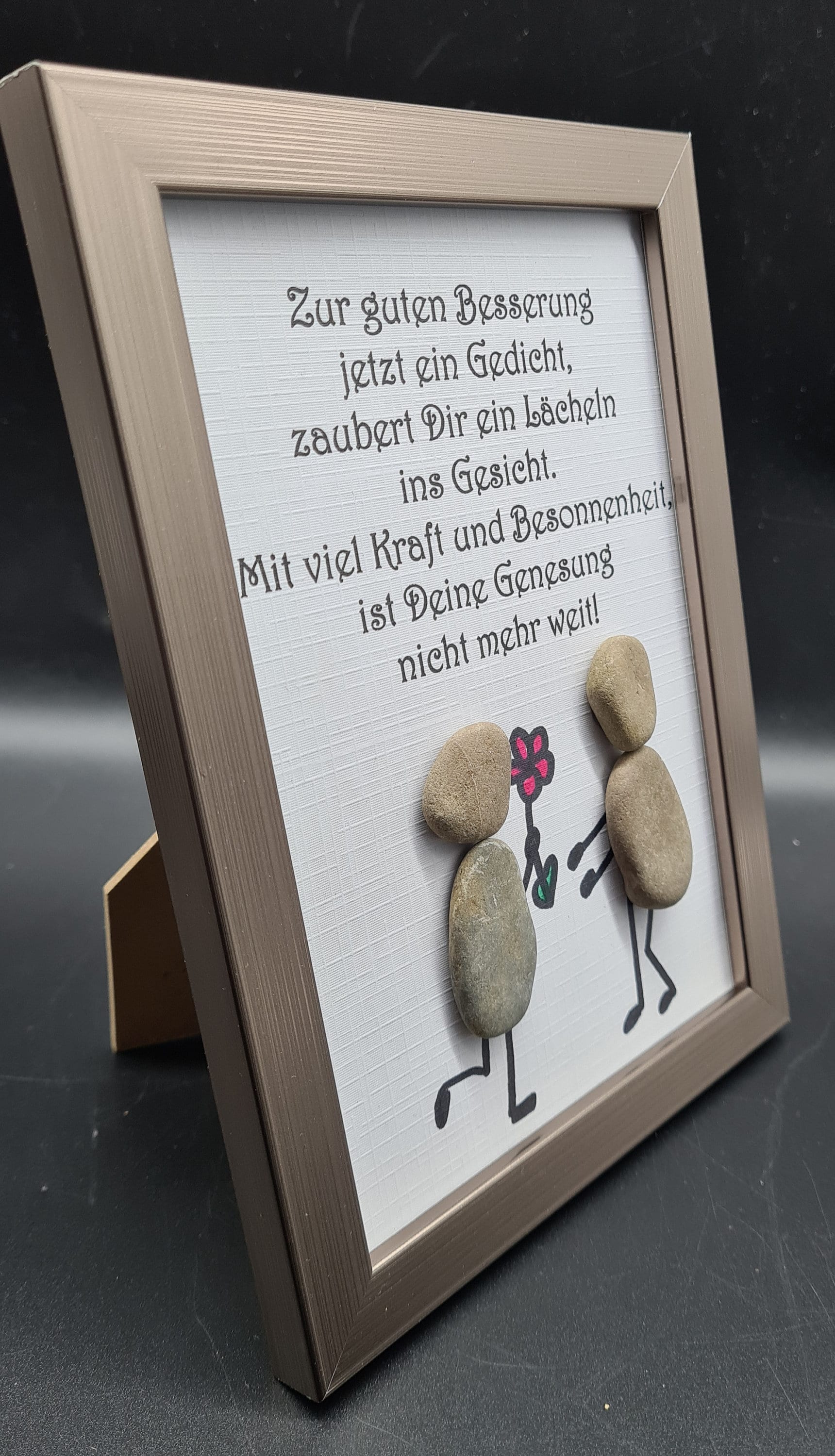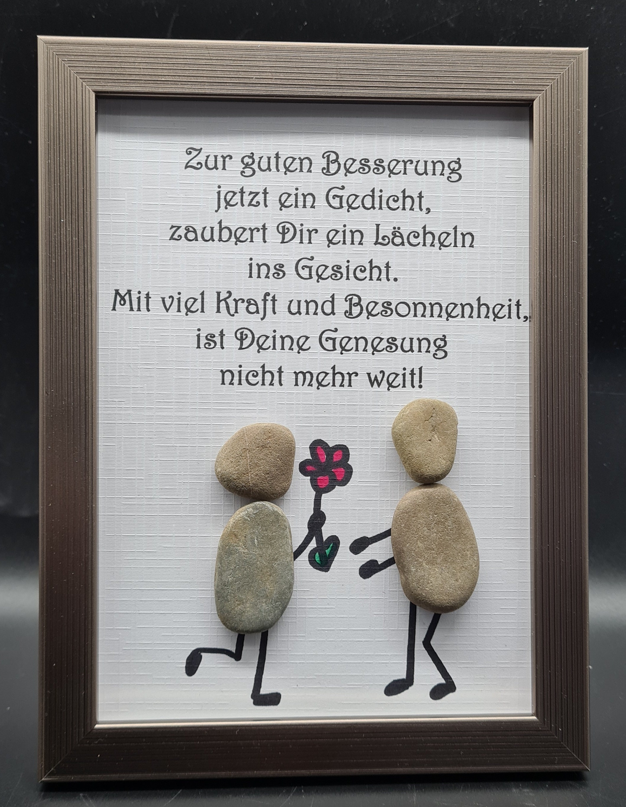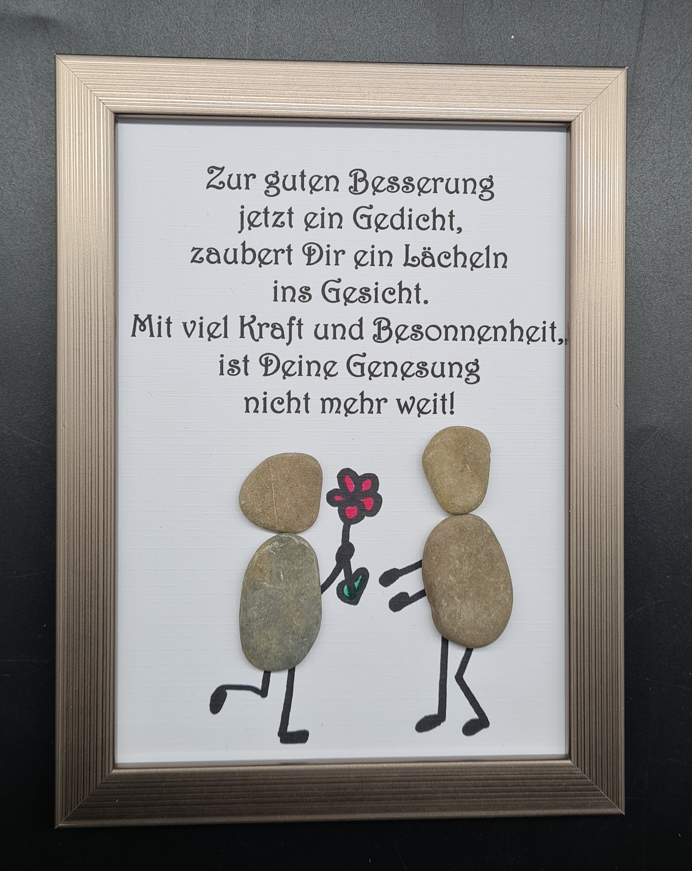 Liebevoll handgefertigtes Steinbild als Geschenk für Erkrankte, die schnell wieder gesund werden sollen.