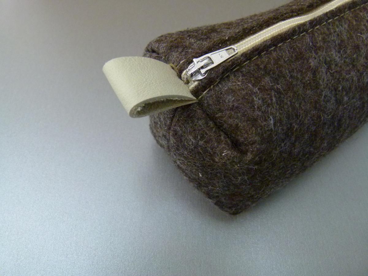 Verwendete Materialien: Wollfilz, Leder, Reißverschluss, Schieber silber und Nähgarn