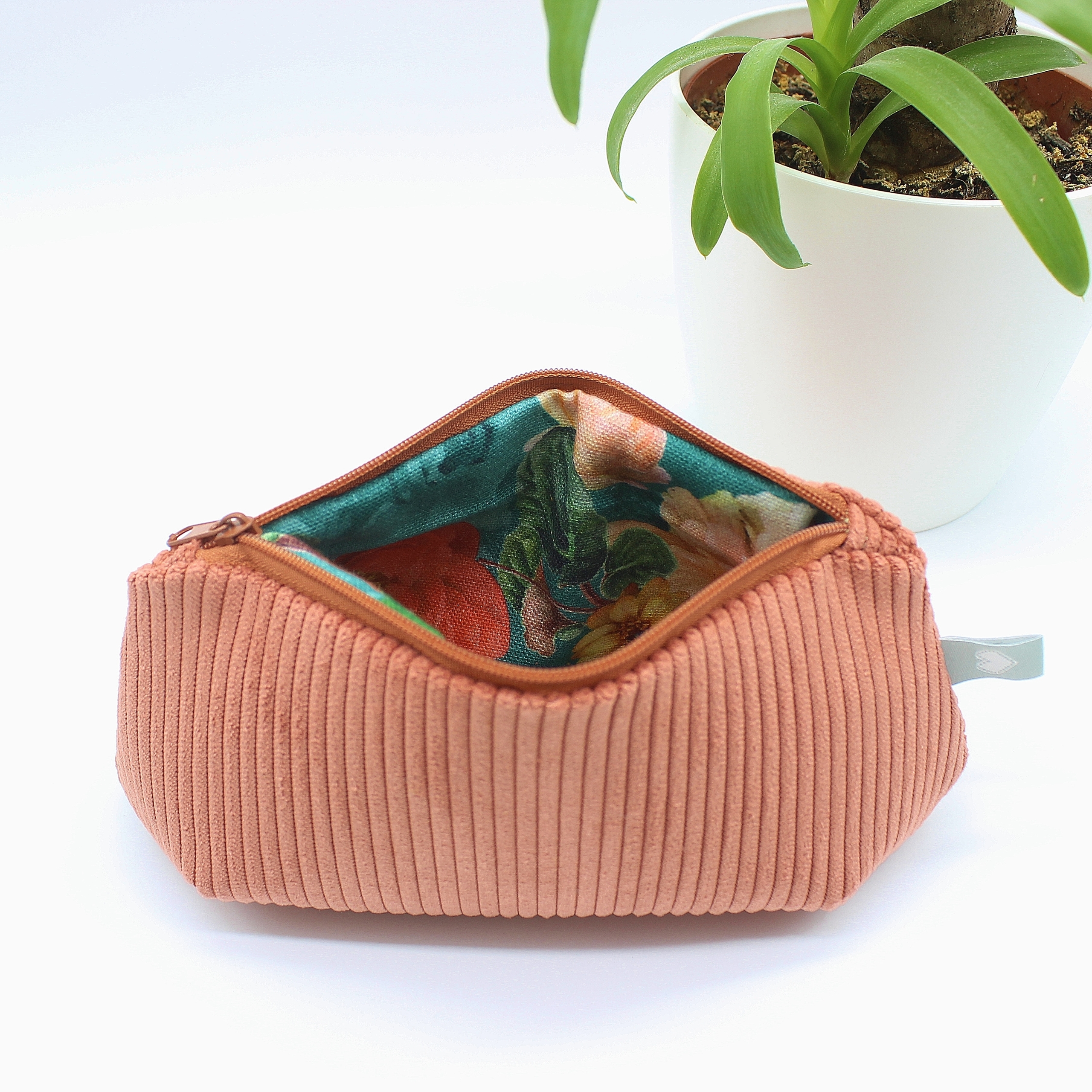 Innen und außen werden ausgewählte, hochwertige Stoffe verarbeitet. Bei diesem Täschchen habe ich Cord und Canvas gewählt.