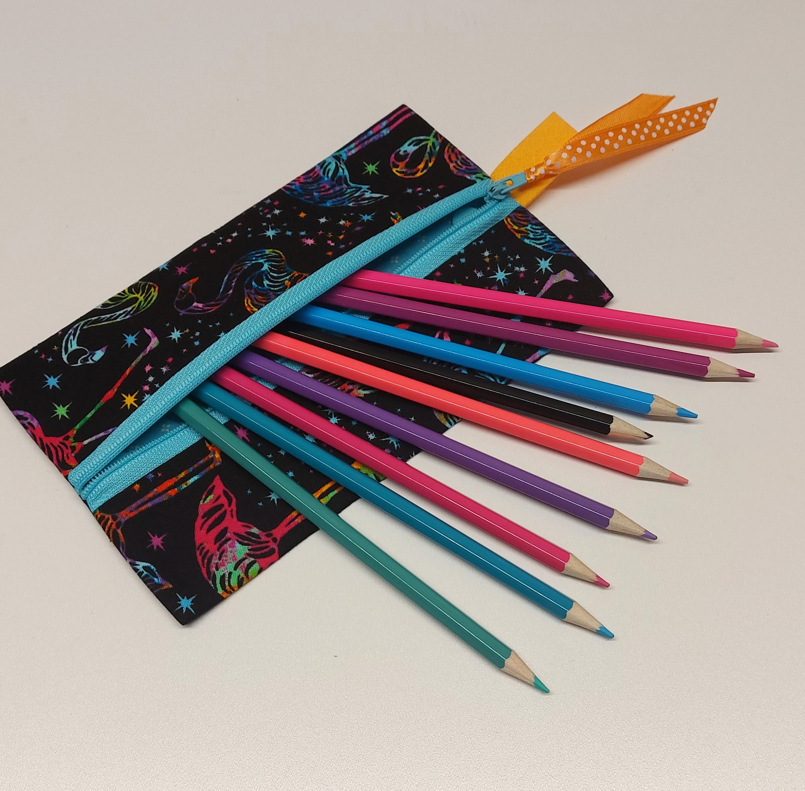 viele Fächer, Stiftereihe für ca. 30 Stifte, abknöpfbare Reißverschlußtasche