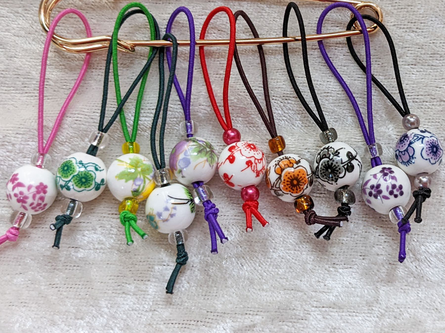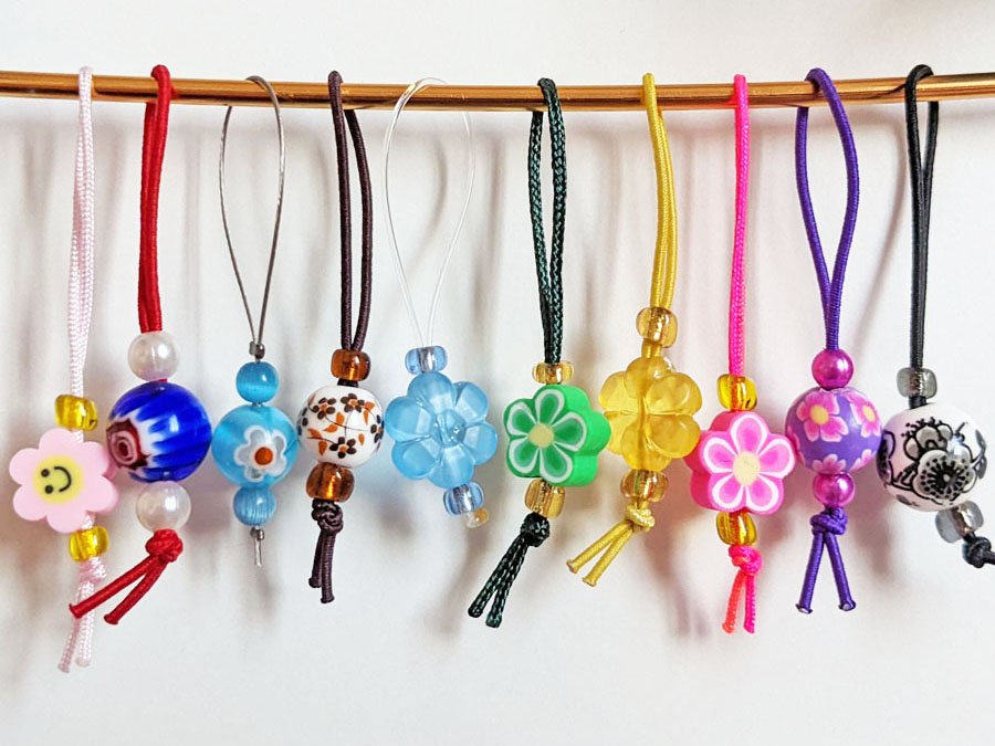 - Maschenmarkierer Set mit Blumen 10 Stück bunte Dekoperlen, wahlweise an Schlaufen, Ringe oder Klammern