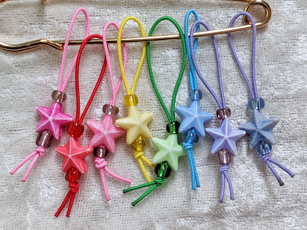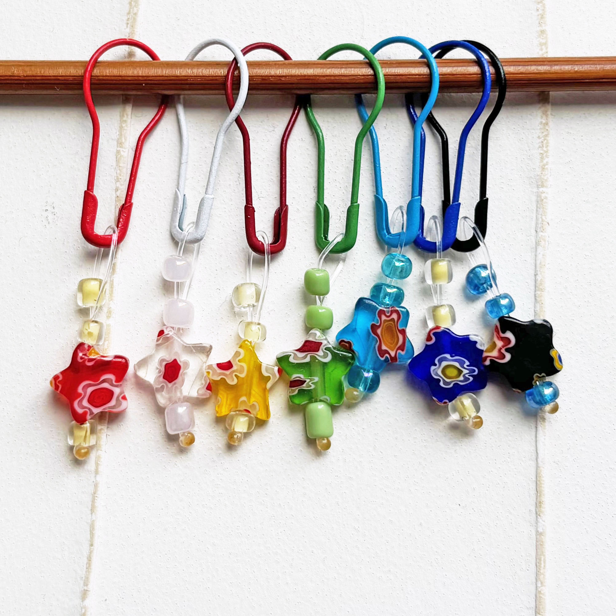 - Maschenmarkierer Set mit Sternen 10 Stück bunte Dekoperlen, wahlweise an Schlaufen, Ringe oder Klammern