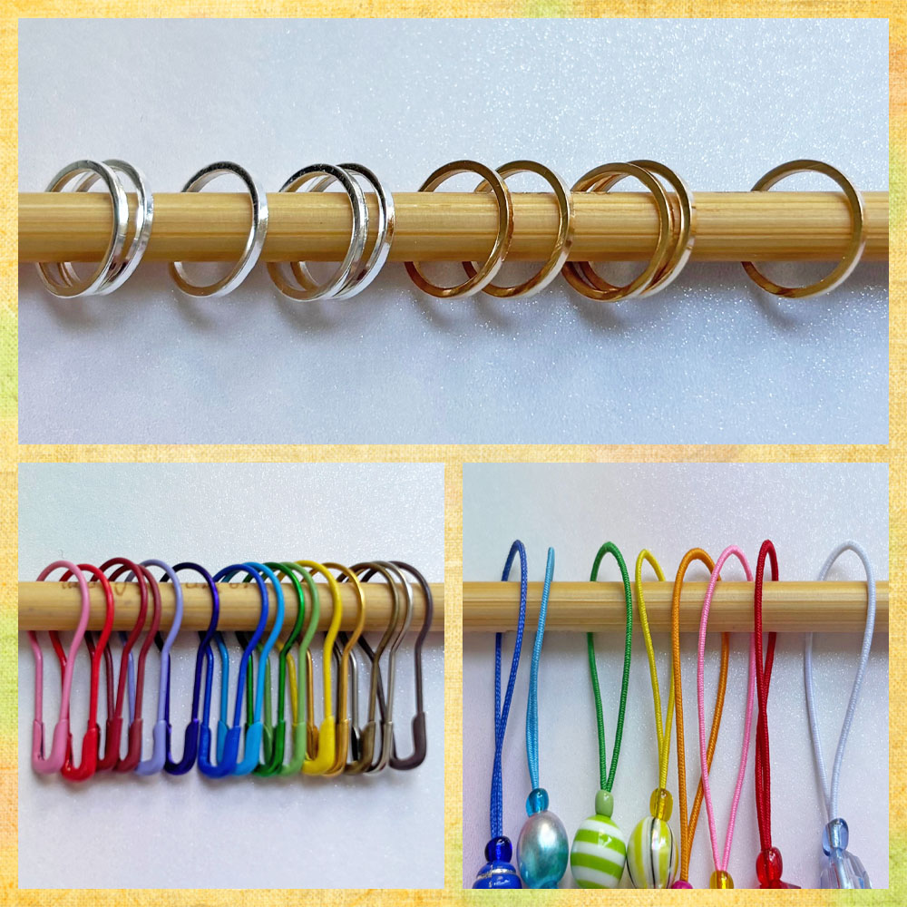 Die Marker sind eine äußerst praktische Hilfe beim Stricken um bestimmte Abschnitte zu kennzeichnen, z.B. Anfang oder Seiten bei rundgestrickten Teilen, Beginn und Ende des Rapports bei Mustern, die Mitte bei symmetrischen Tüchern usw.