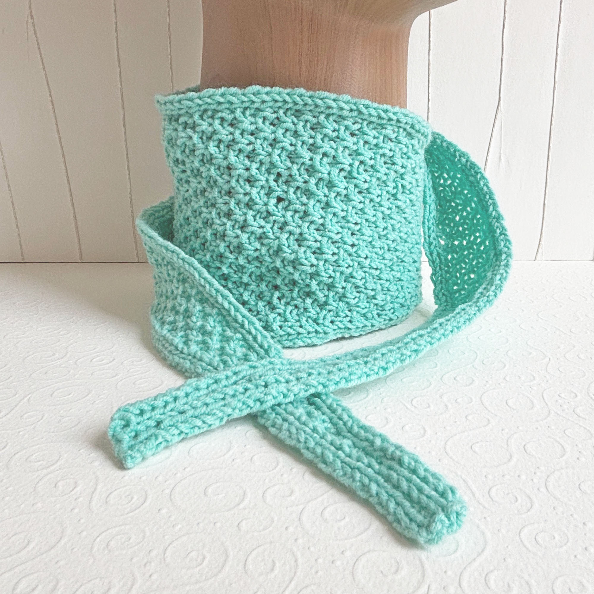 Halsnahes Stricktuch in Mintgrün aus federleichtem Garn.