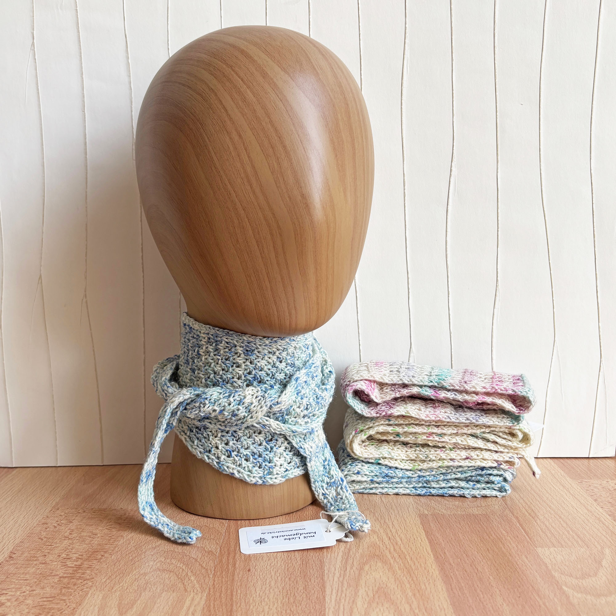 - Schmaler Knotenschal von Sophie inspiriert in kleinen Noppen mit Rippenrand handgestrickt