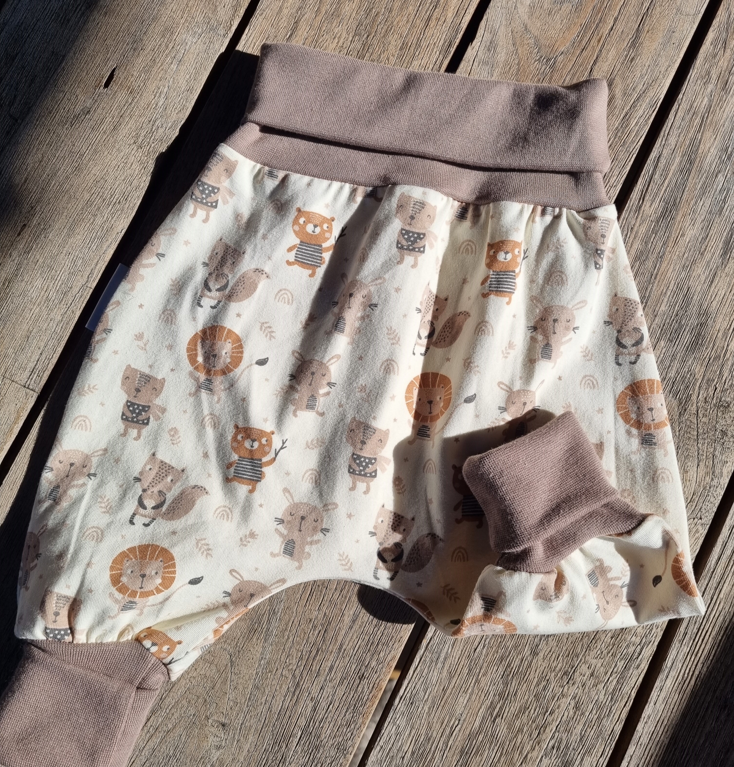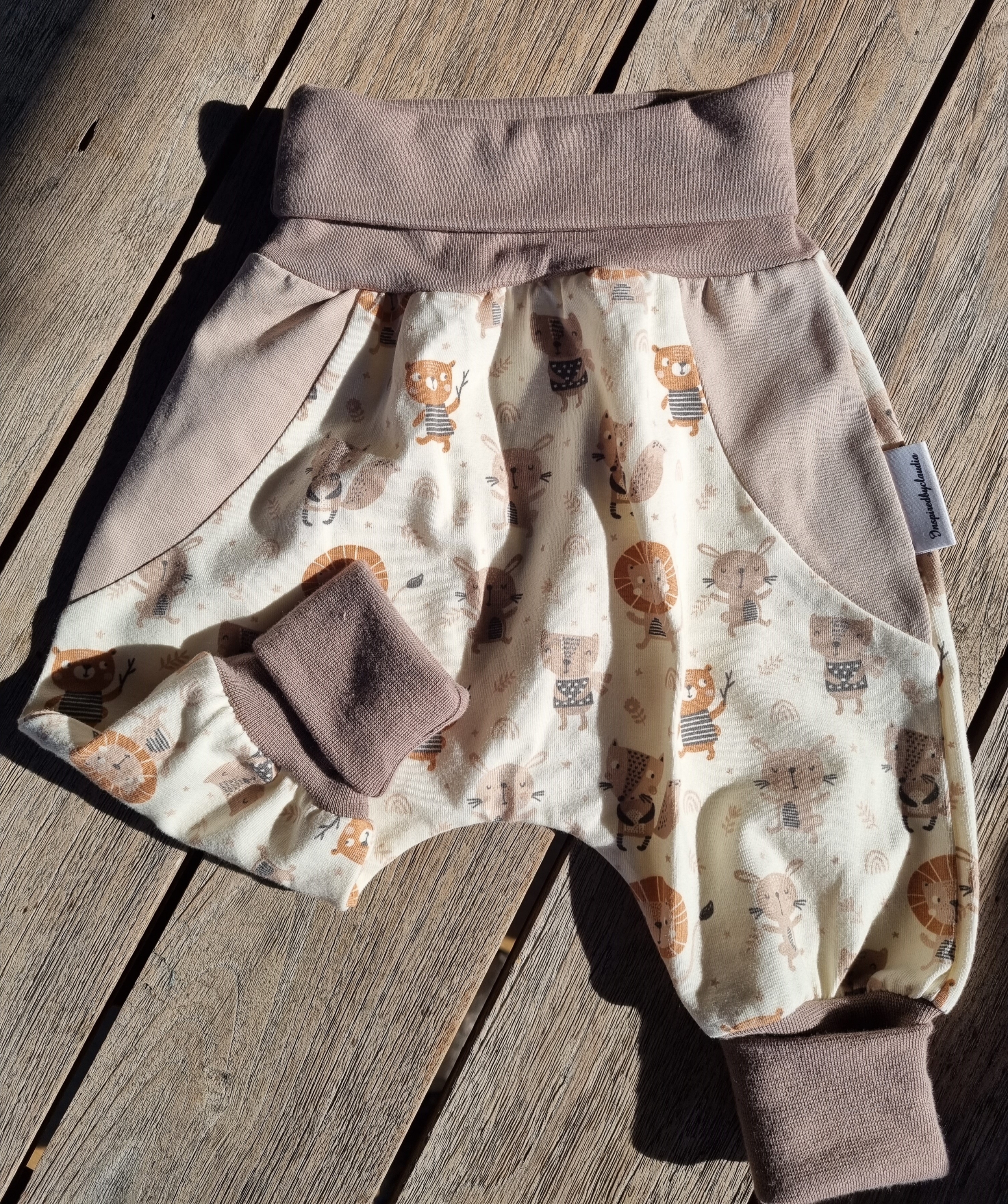 Die Bauch- und Beinbündchen können Umgeschlagen werden, so das die Hose 1- 2 Größen mitwachsen kann.