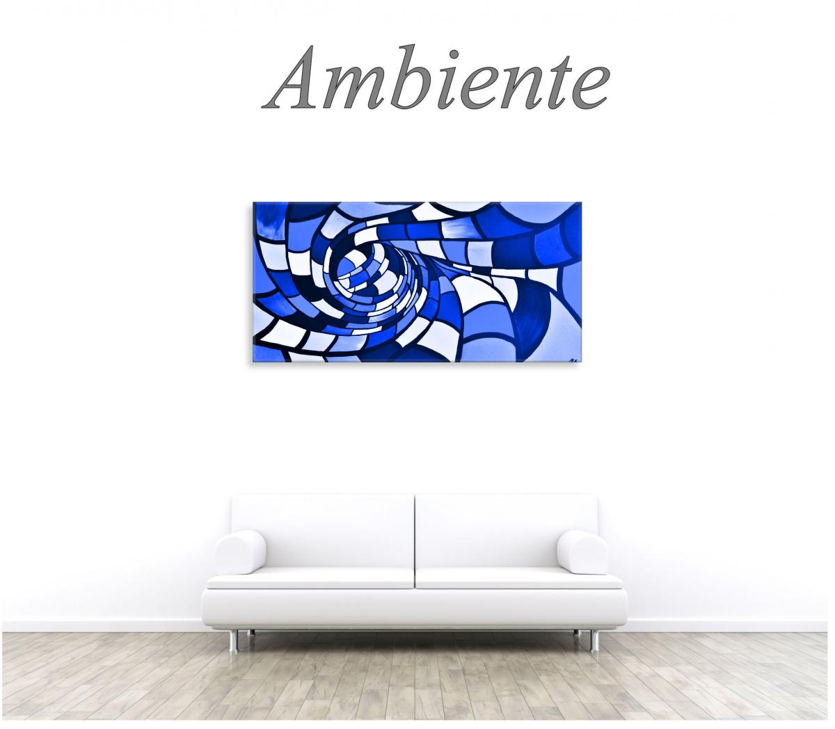 MK1 Art Bild Leinwand Abstrakt Kunst Malerei Acrylbild blau weiß