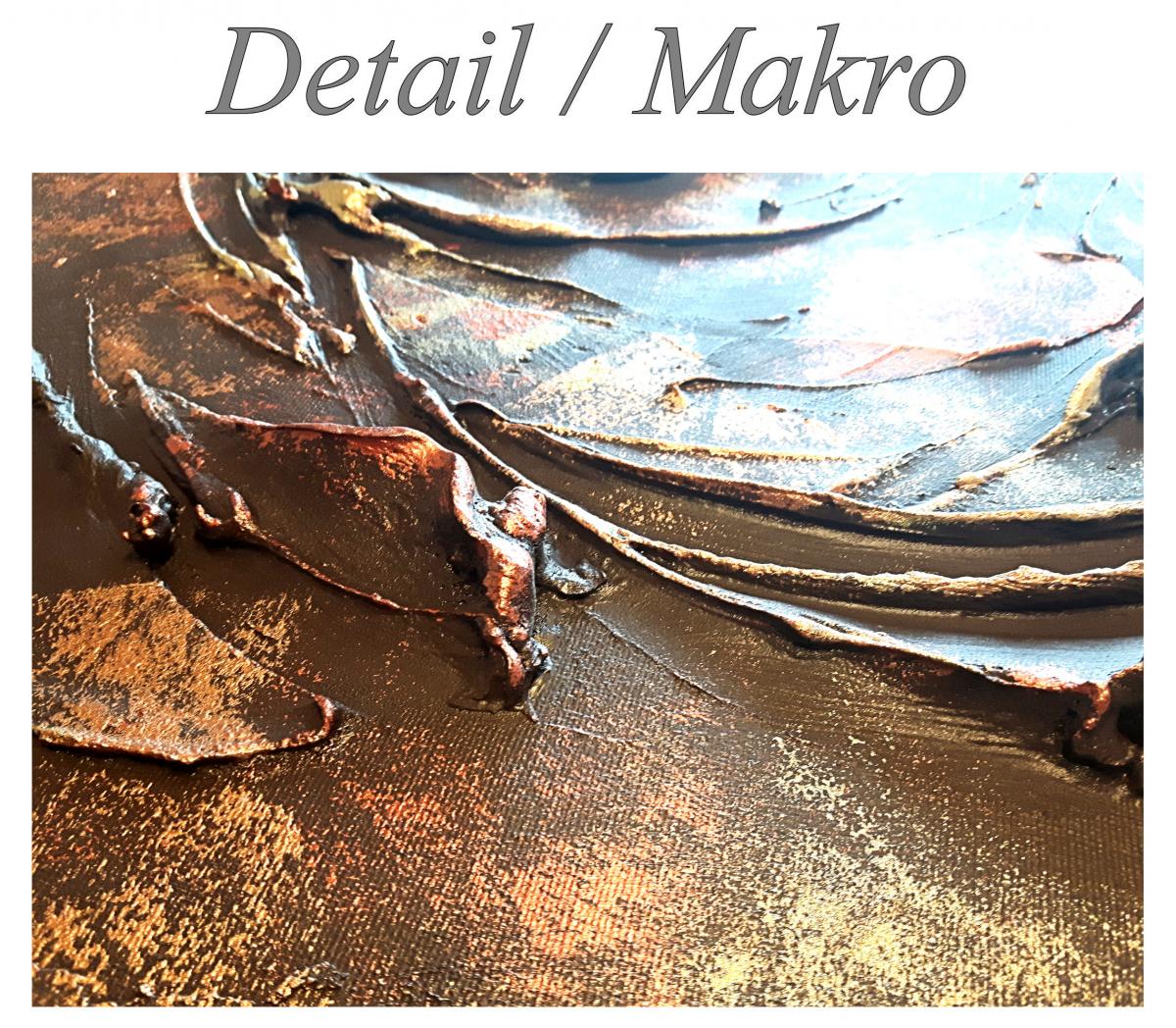 Gemalt wurde mit hochwertigen Künstler-Acrylfarben. Die verwendeten Metallic-Töne, Bronze und Gold, enthalten (echte Metallpigmente) die dem Gemälde durch deren Glanzintensität sein edles Aussehen verleihen.