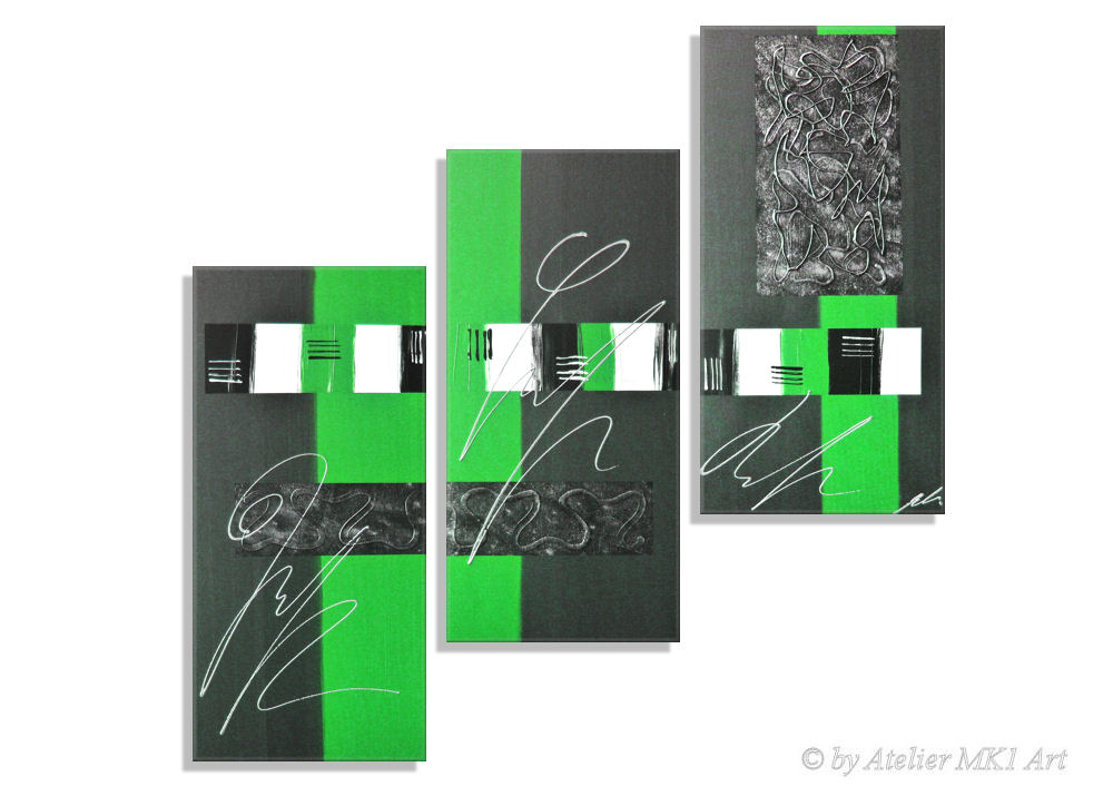 MK1 Art Bild Leinwand Abstrakt Kunst Malerei Acrylbild Grün XL