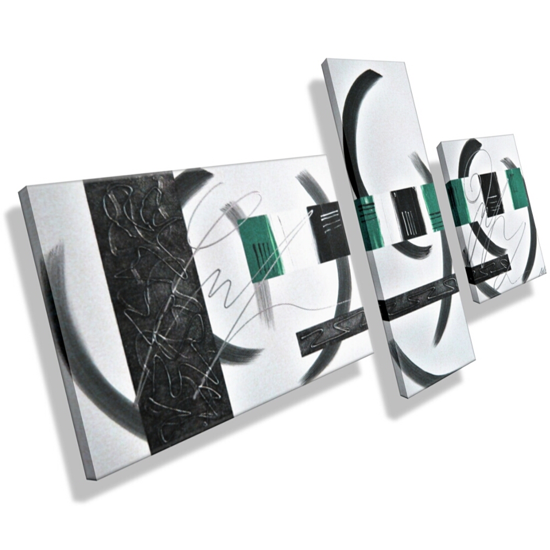 Titanweiß, Grau (Wischtechnik), Anthrazit, Petrol. Metallic-Silber (echte Metallpigmente) auf Anthrazit. |
