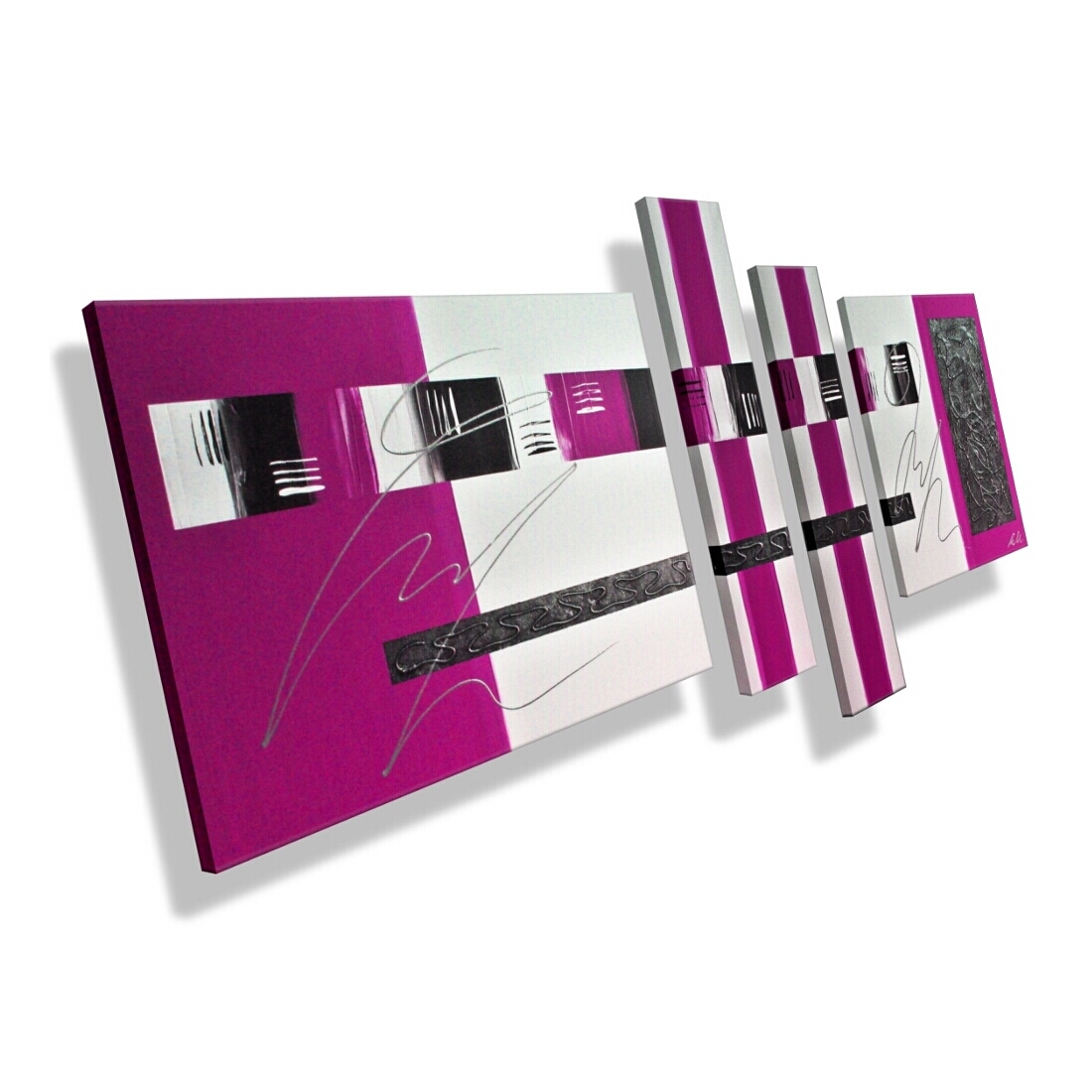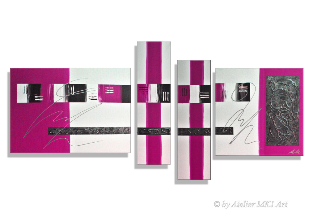 MK1 Art Bild Leinwand Abstrakt Kunst Malerei Acrylbild pink grau