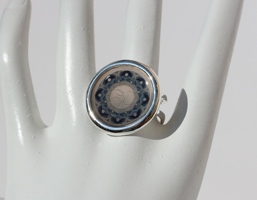 Ein dekorativer Ring mit dem Mond mandala Motiv "Lunasacrada".