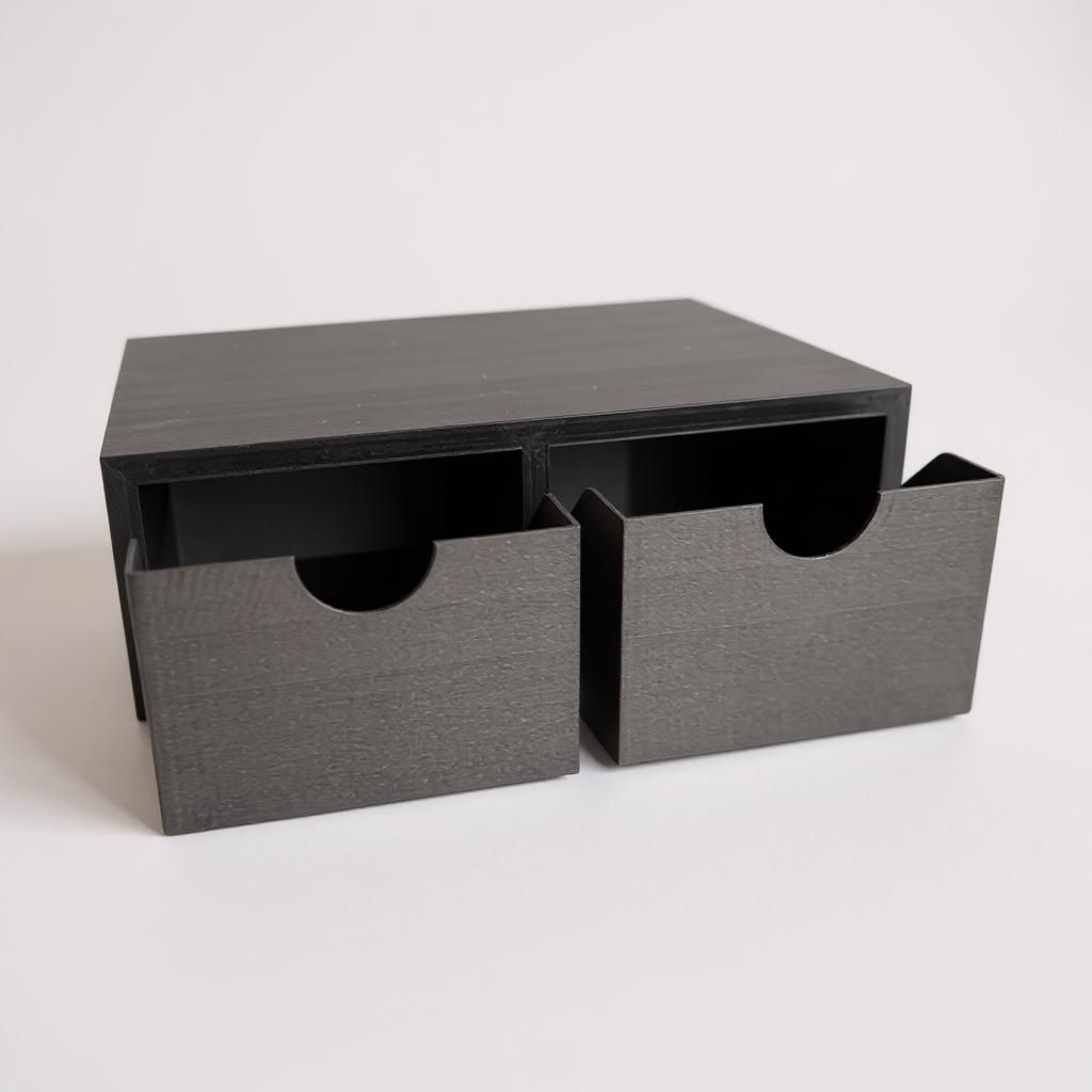 - Aufbau: Tragbarer Organizer mit zwei Schubladen