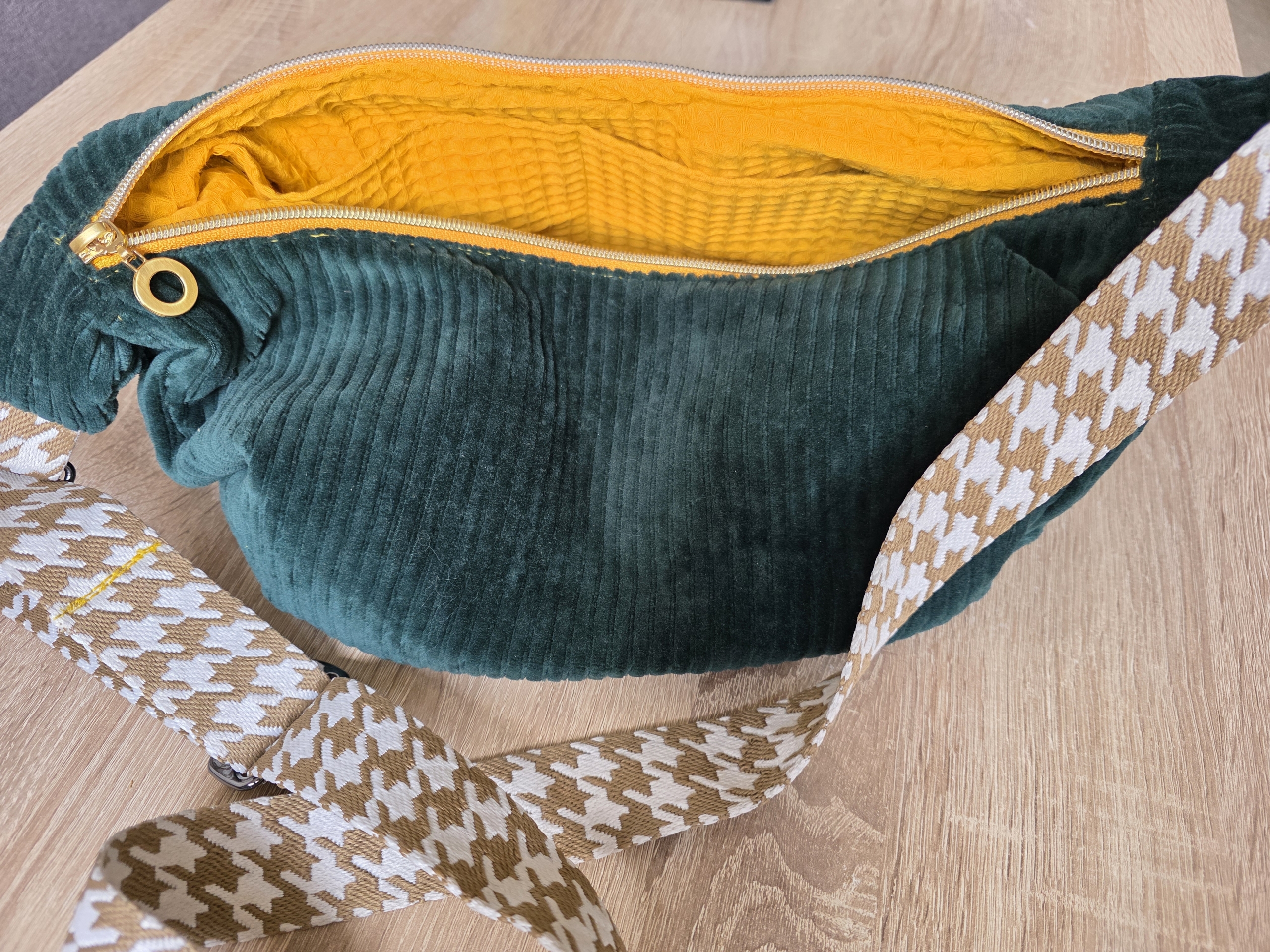 Dieses Moonbag verbindet gemütliche Materialien mit modernem Design und ist damit das perfekte Accessoire für jeden Tag. Der smaragdgrüne Cordstoff verleiht der Tasche eine warme, weiche Haptik und einen edlen, zugleich lässigen Look. Durch seine feine Rippenstruktur wirkt der Stoff besonders hochwertig und macht die Tasche zu einem echten Hingucker.
