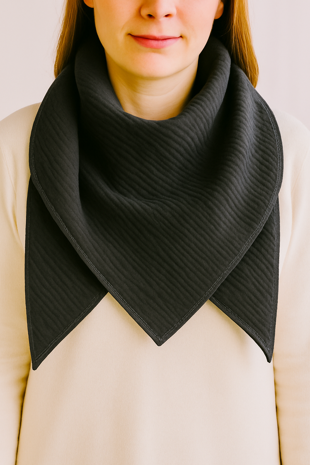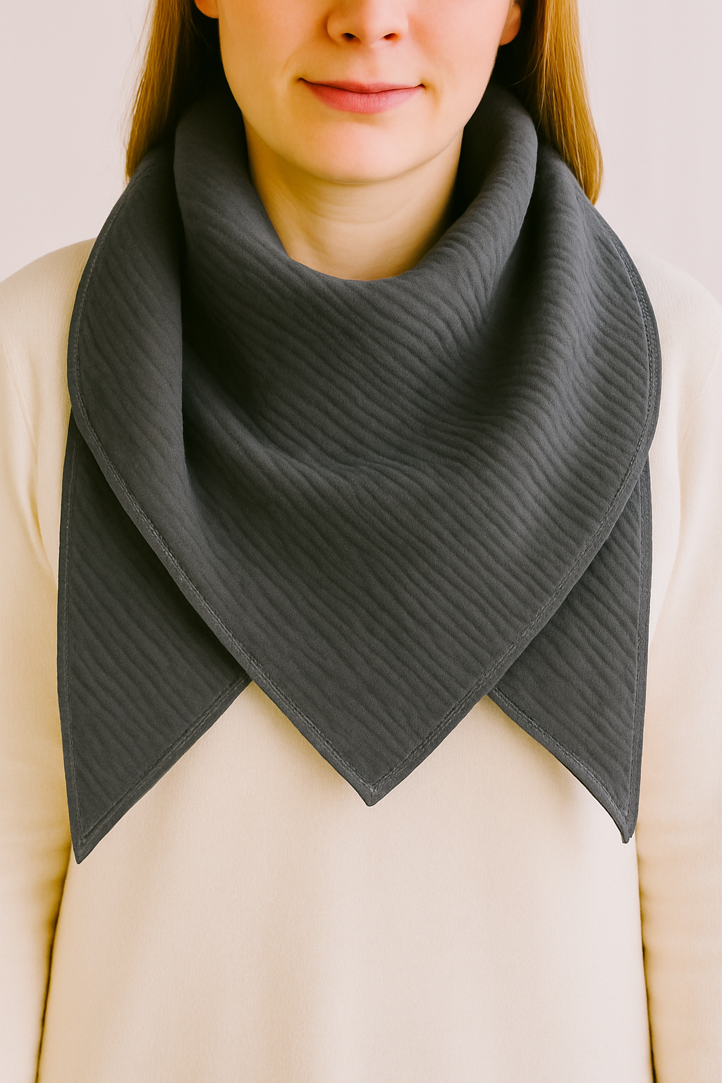Der hochwertige Musselin überzeugt durch seine angenehm weiche, atmungsaktive Struktur und ein besonders leichtes Tragegefühl. Mit jedem Waschen wird das Tuch noch weicher und gewinnt an Charakter. Die sauber versäuberte Oberlocknaht sorgt nicht nur für eine langlebige Verarbeitung, sondern setzt auch einen dezenten, modernen Abschluss.