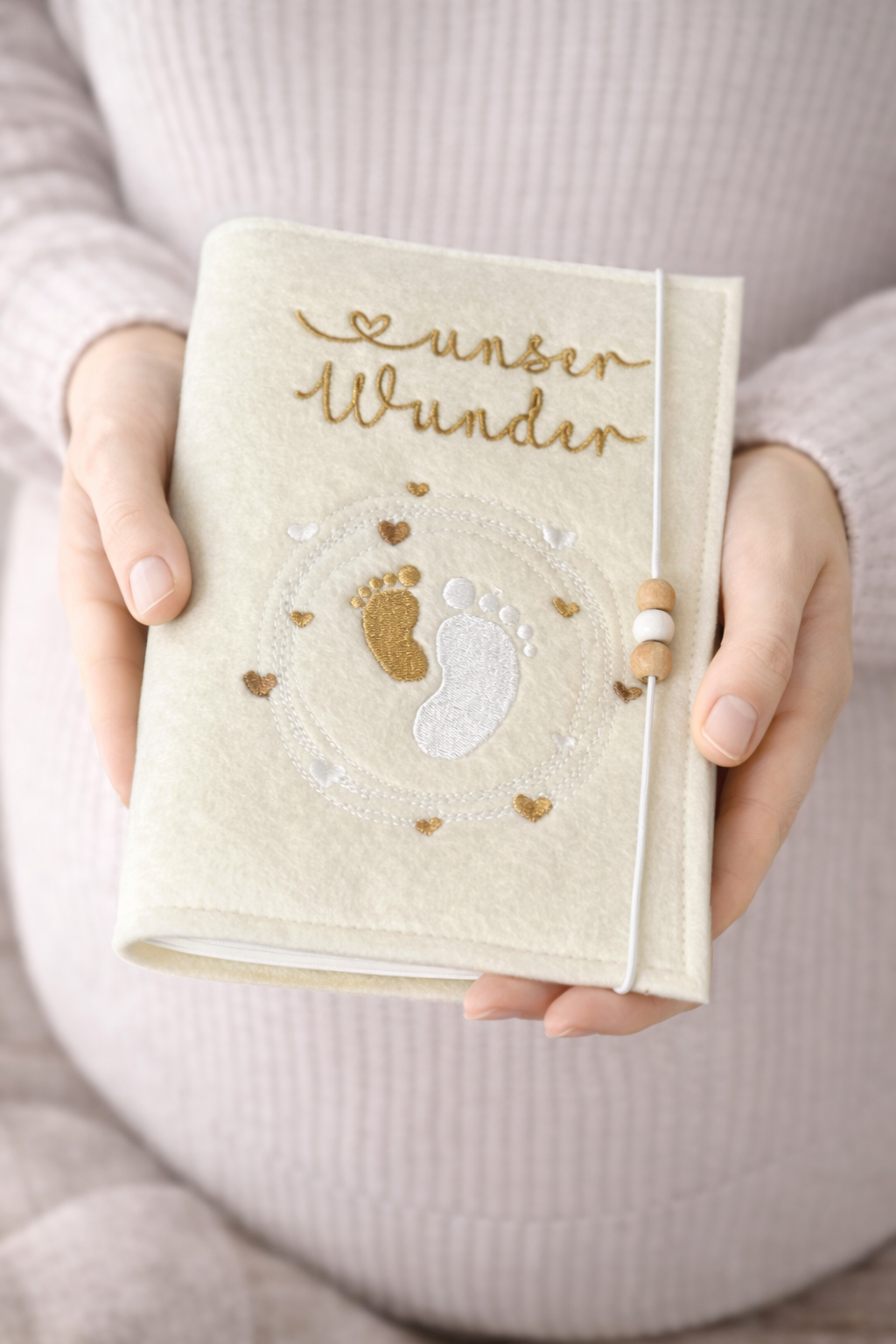 Mutterpasshülle aus Filz – bestickt & praktisch | mit Fach für Ultraschallbilder & Versichertenkarte