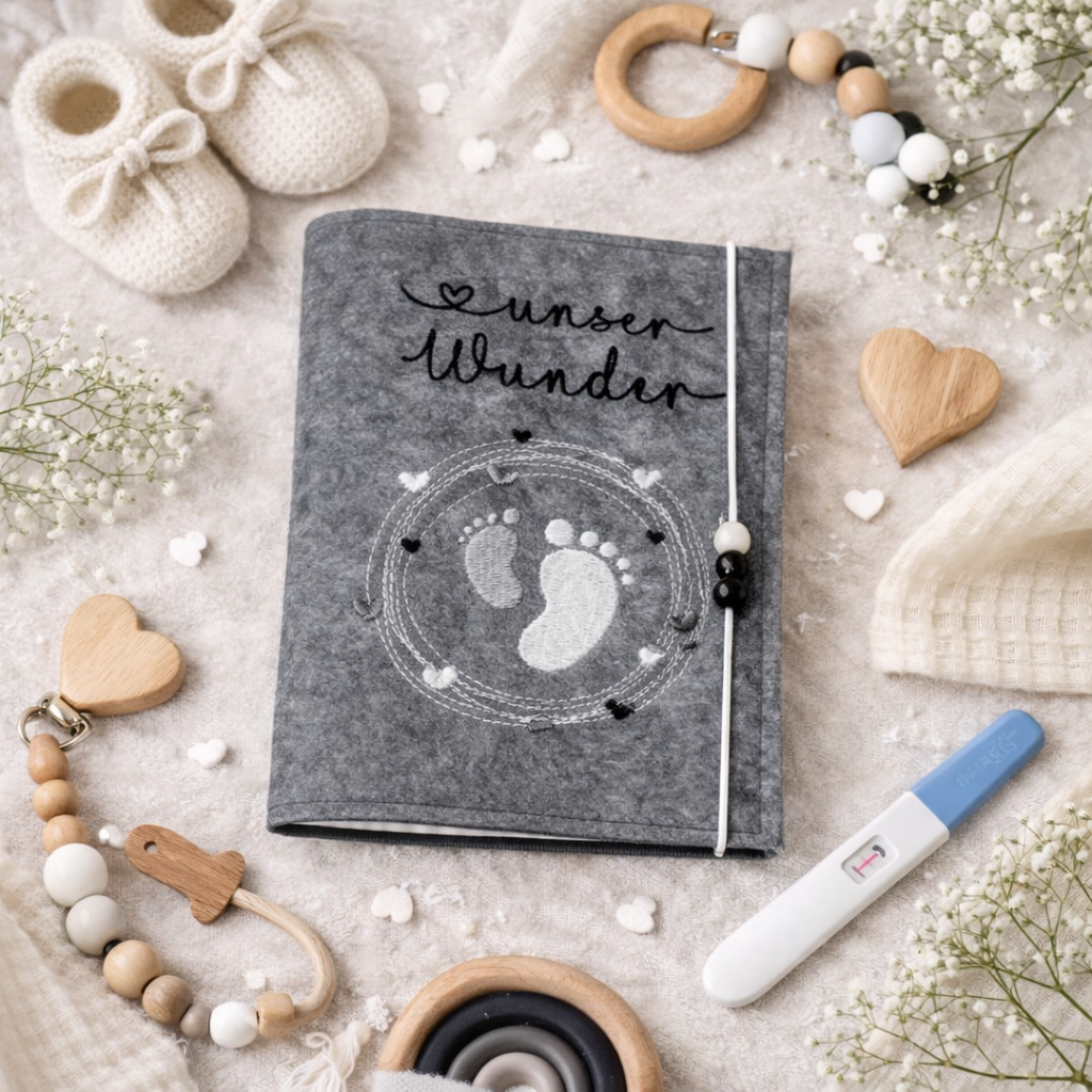 Die hochwertige Mutterpasshülle Filz schützt deinen Mutterpass zuverlässig und bietet im Inneren zusätzliche Fächer für Ultraschallbilder und die Versichertenkarte. So hast du bei jedem Arzttermin alles ordentlich verstaut und sofort griffbereit.