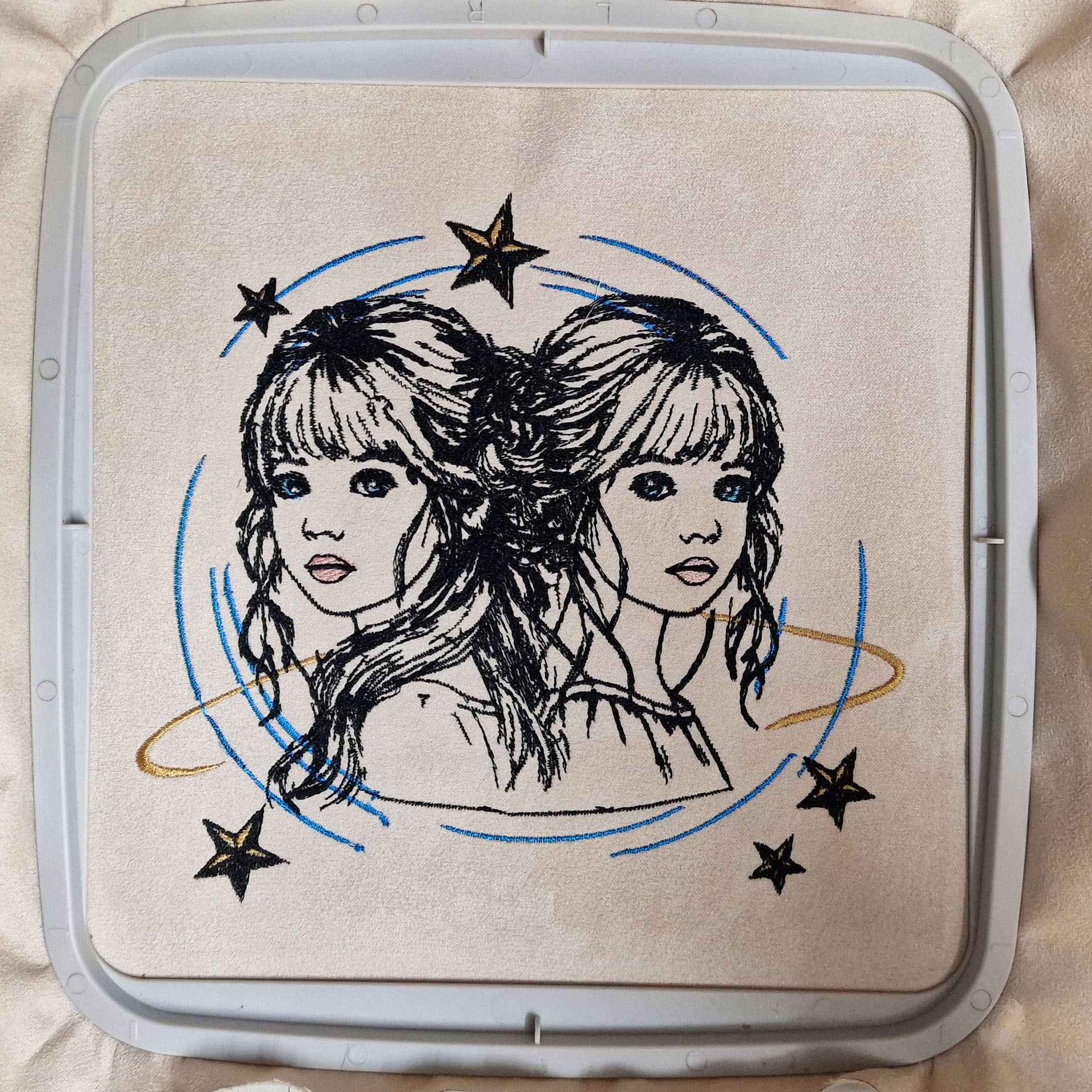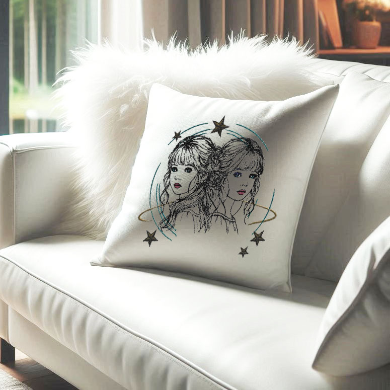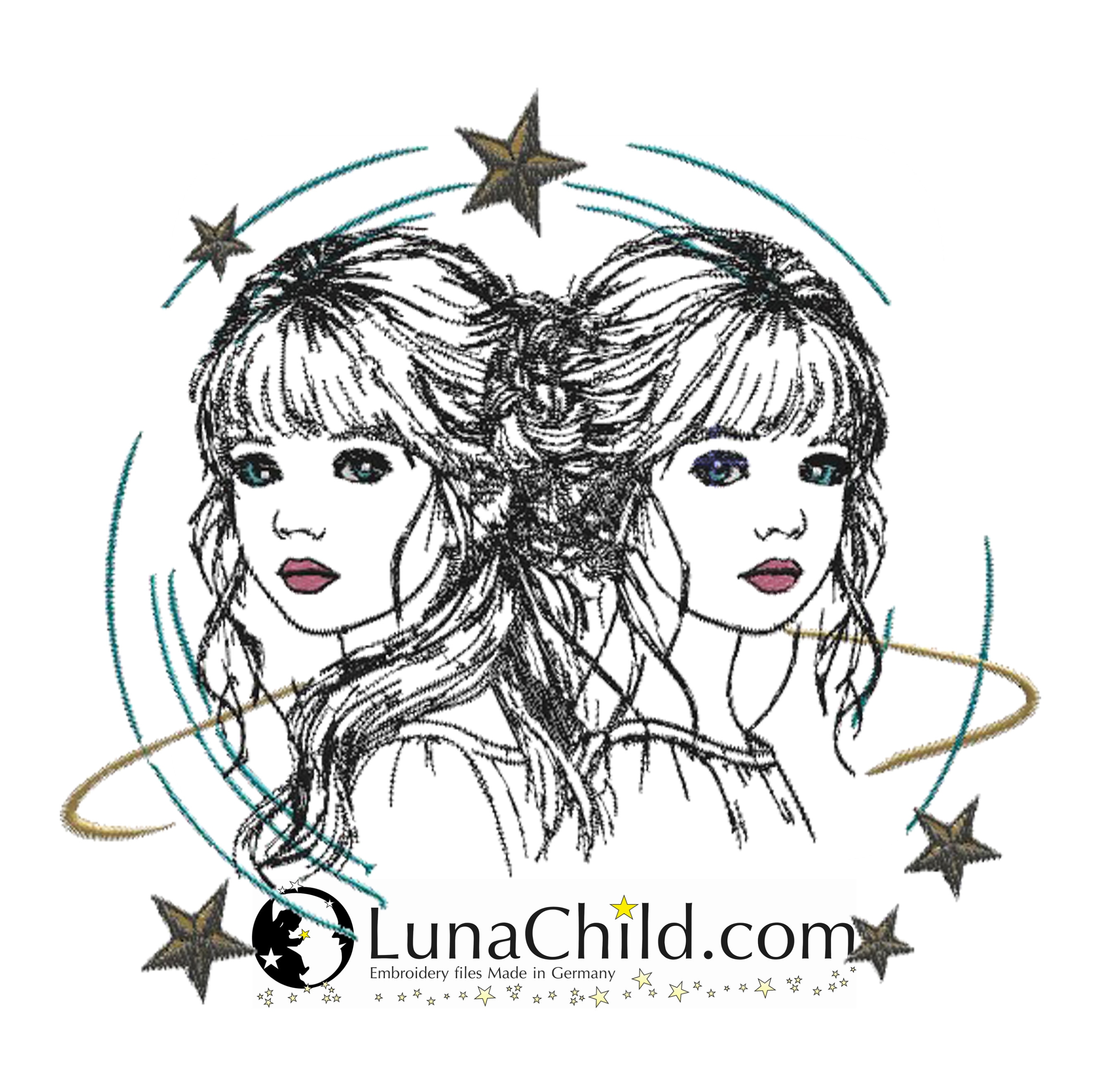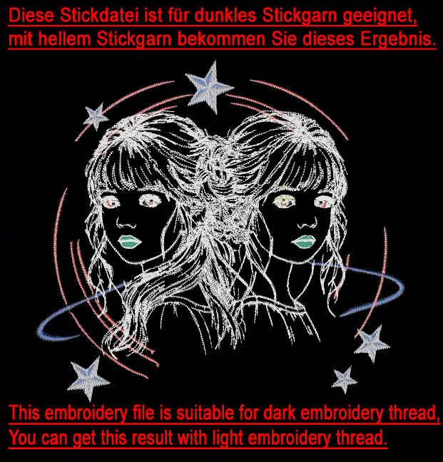 Süße Stickdatei für die Stickmaschine Sternzeichen "Zwilling"
