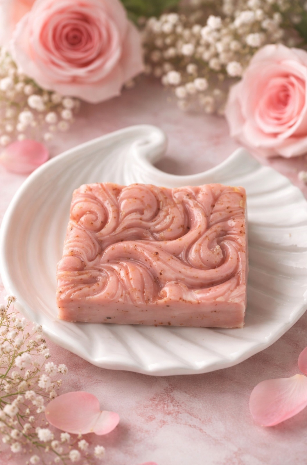 Meine pflegende vegane Duschseife mit sommerlichen Rosenduft und Bio Traubenkernöl sorgt für ein angenehmes Hautgefühl.