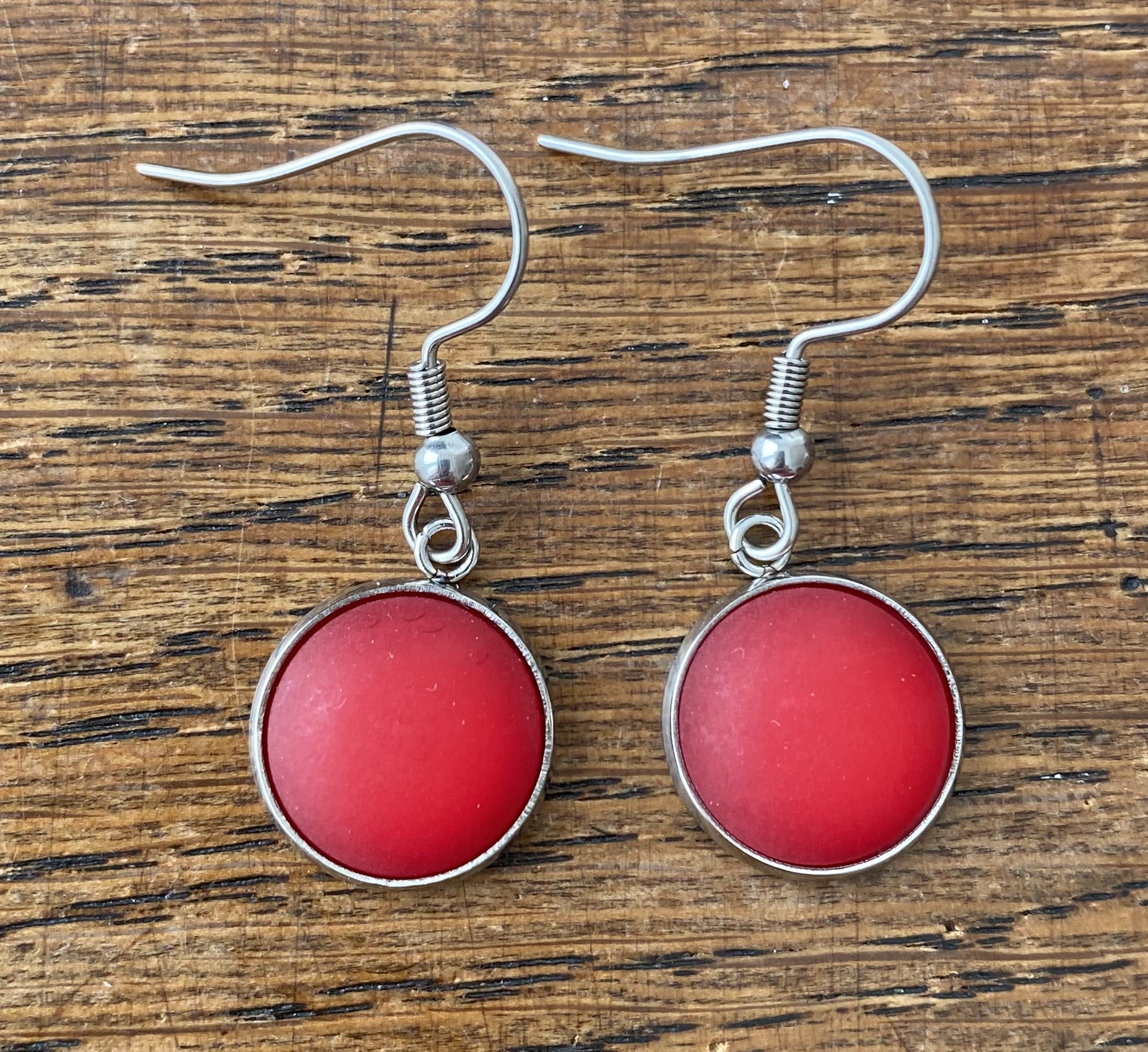 Die Ohrhänger (Preis pro Paar) aus Edelstahl sind mit 12mm Polaris Cabochons in der Farbe rot hergestellt. Sie haben ab der Biegung eine Länge von 3,5 cm.