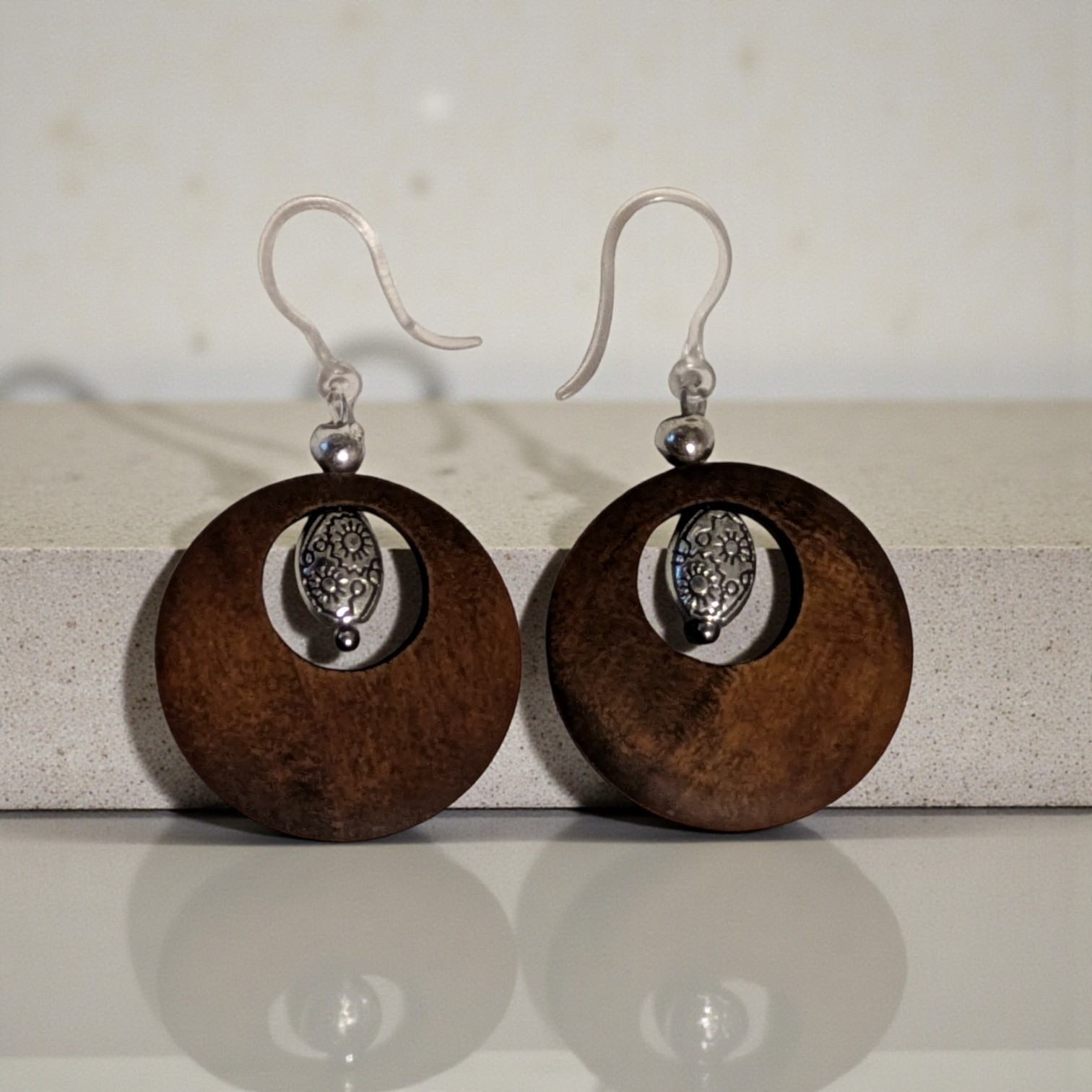 Kreative Ohrringe mit Holzanhänger