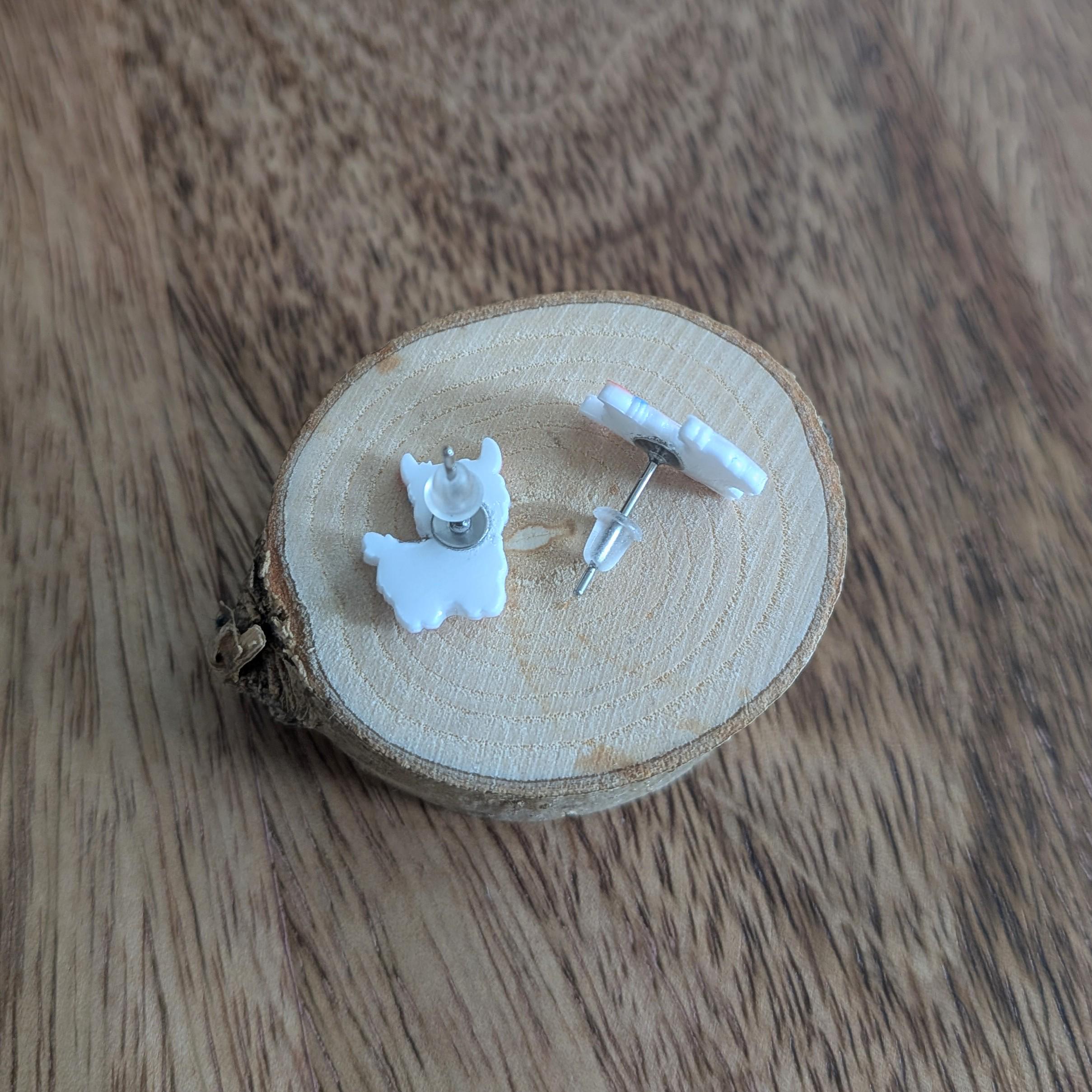 Das Hauptmaterial der Ohrringe (wo das Design drauf ist) ist Plastik.