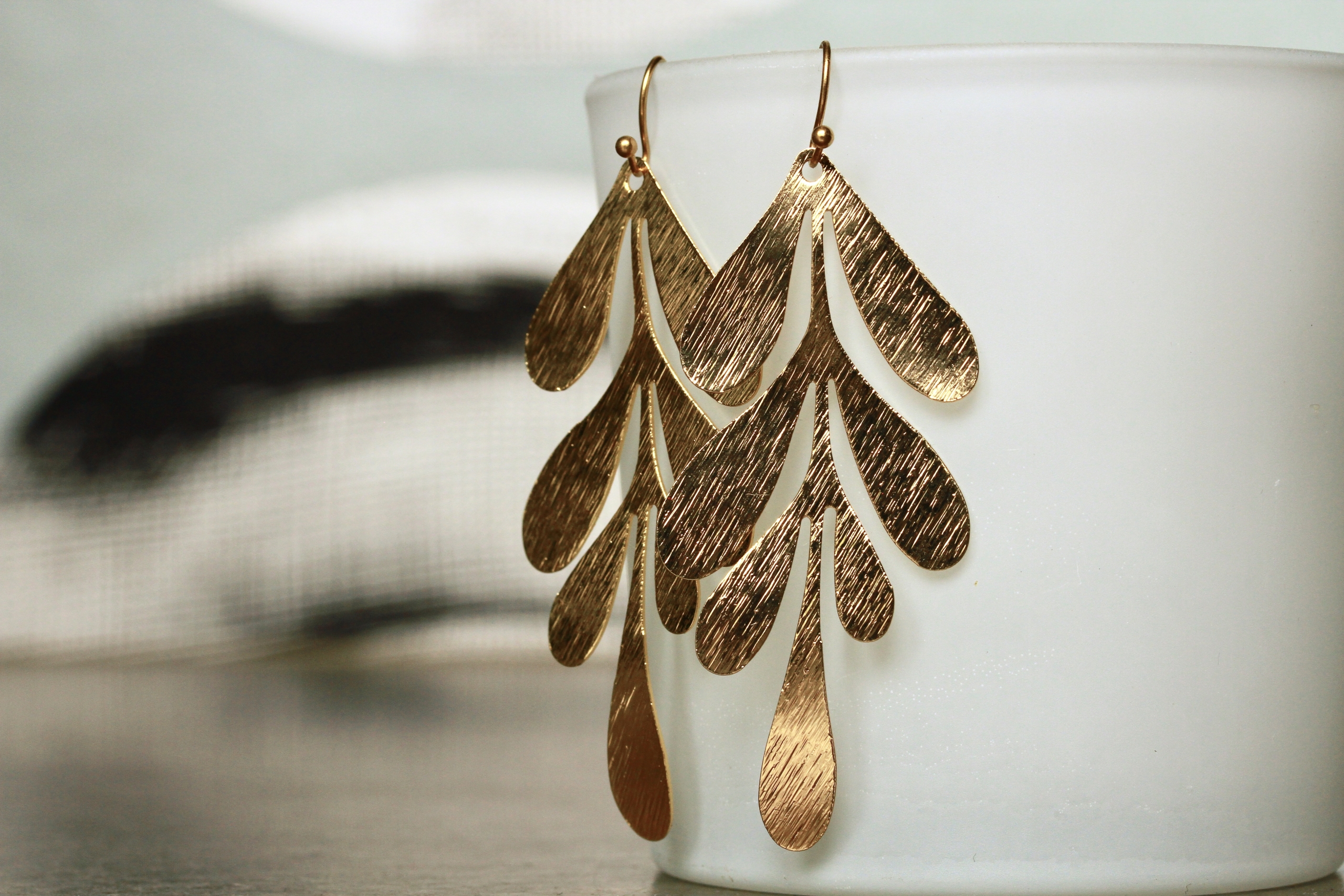 Sehr große Ohrringe in Form eines Blattes, echt vergoldet aus Messing mit schlichtem Ohrhänger aus vergoldetem Edelstahl. Sehr modisch im aktuellen Trend der geometrischen Formen und in der XXL Größe unübersehbar schön. Trotz ihrer unübersehbaren Größe, sind sie kaum zu spüren und man kann sie den ganzen Tag lang bequem tragen, ohne dass sie an den Ohren ziehen oder sie belasten.