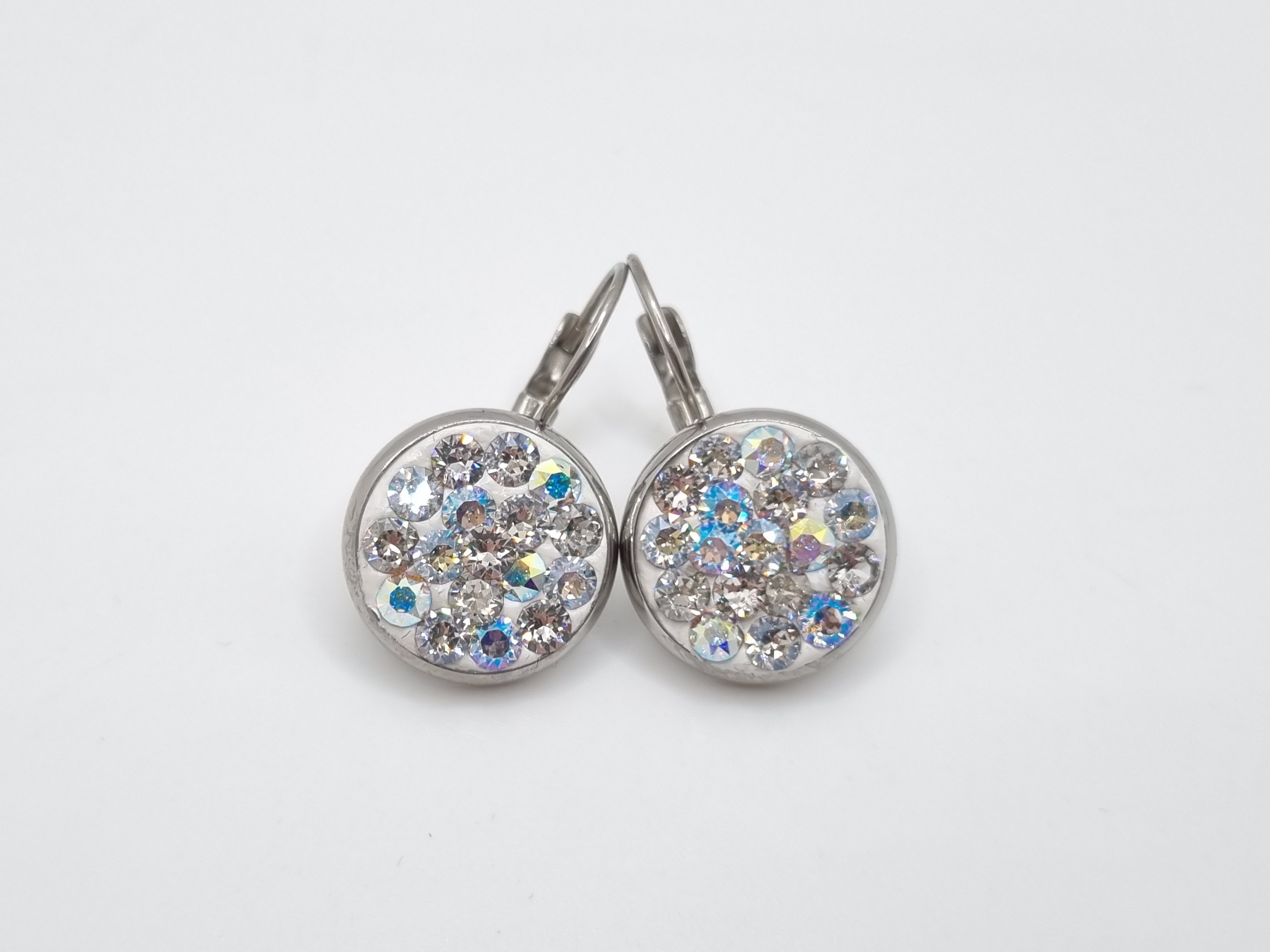 Edelstahlohrringe verziert mit Swarovski® Chatons in den Farben Crystal, Crystal AB, Diamond Touch, Silver Shade, Crystal Moonlight und Crystal Shimmer.