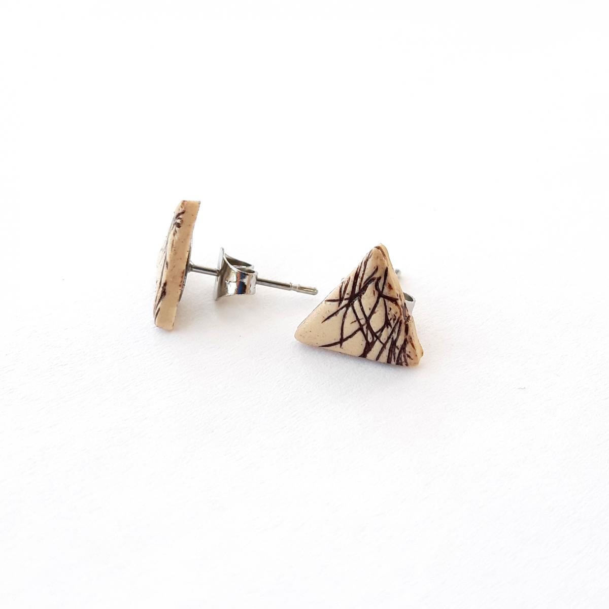 Diese Ohrstecker habe ich aus Fimo gefertigt, indem ich die Masse mit einem echten Blatt geprägt, anschließend gebacken, mit Acrylfarbe bemalt und lackiert habe. Der Stecker ist aus Edelstahl.