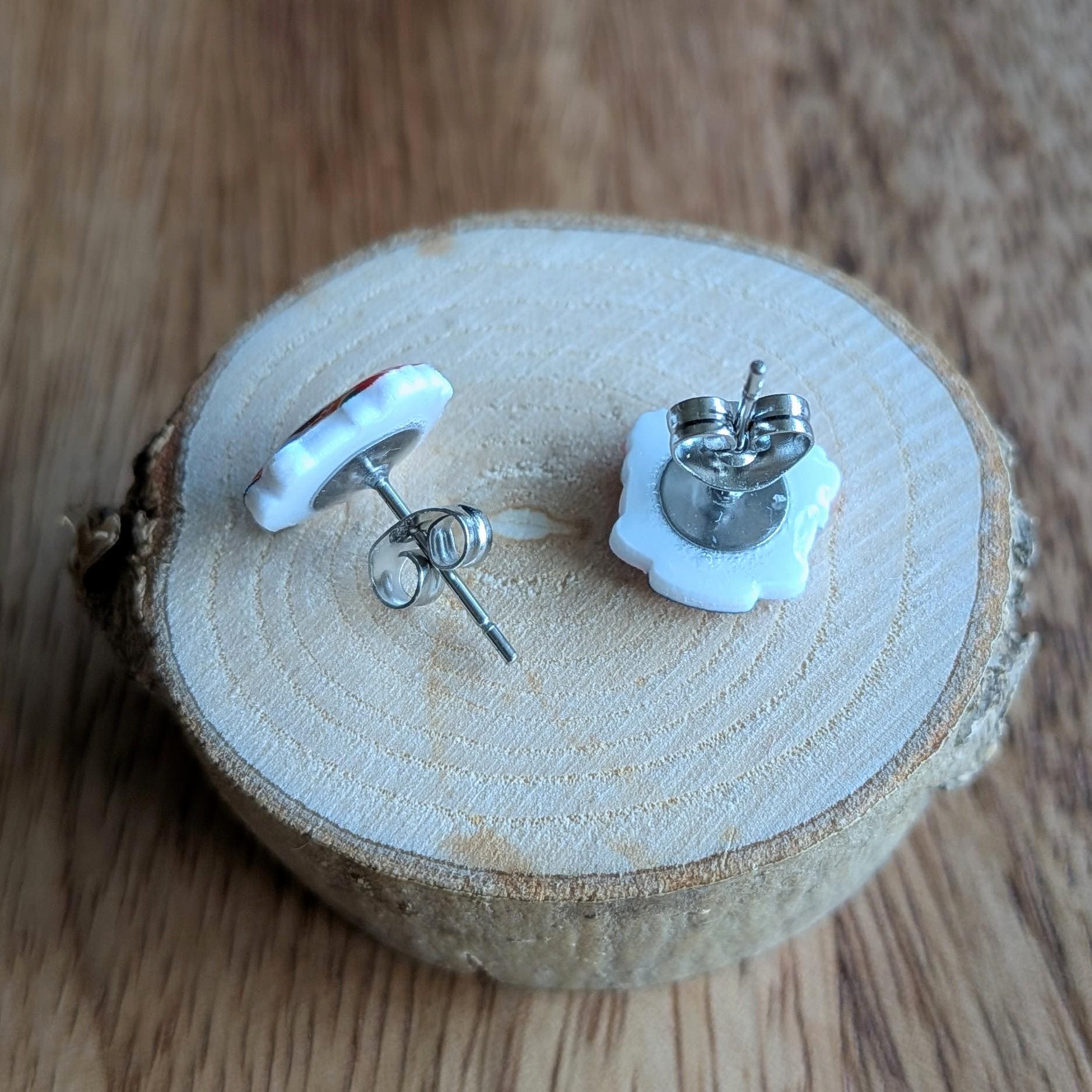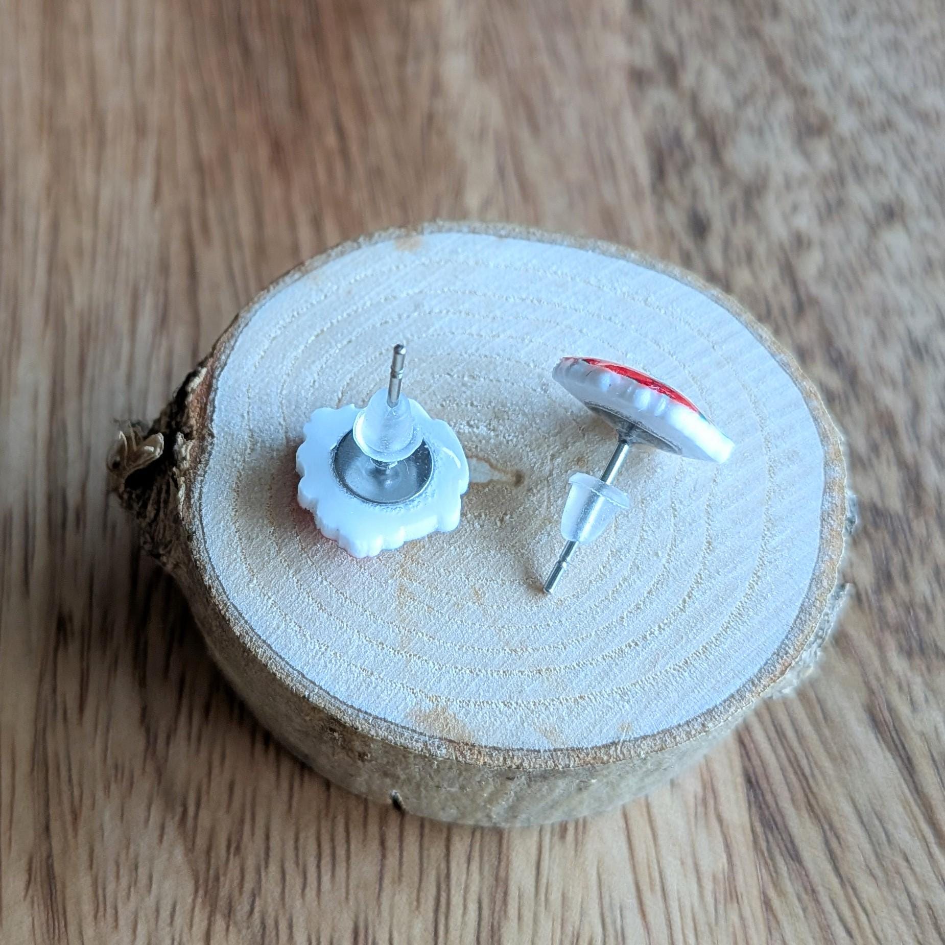 Das Hauptmaterial der Ohrringe (wo das Design drauf ist) ist Plastik. Die Vorder- und Rückseite sind zur besseren Haltbarkeit mit Harz versiegelt. Das Metallteil ist aus Edelstahl.