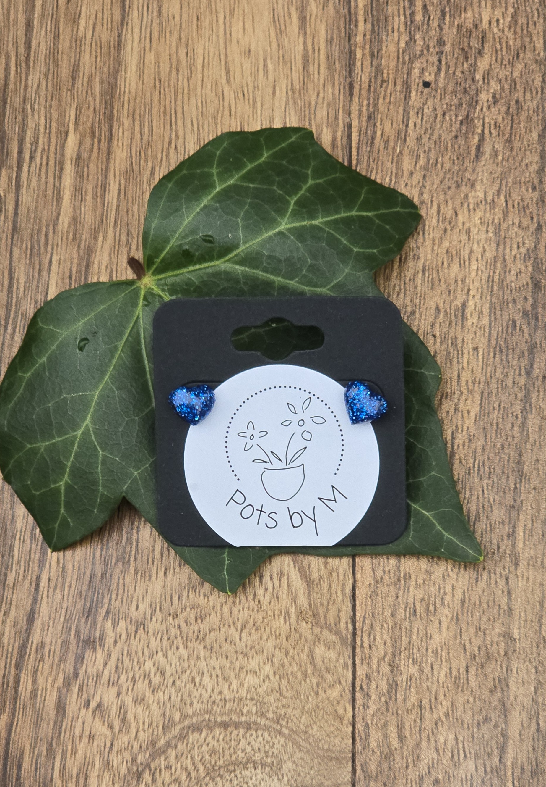 • ​Brillantes Finish: Die Oberfläche ist mit einer glänzenden Schicht UV-Harz (Resin) versiegelt. Das sorgt nicht nur für einen tollen Tiefeneffekt des blauen Glitzers, sondern macht die Ohrringe auch langlebig und robust.