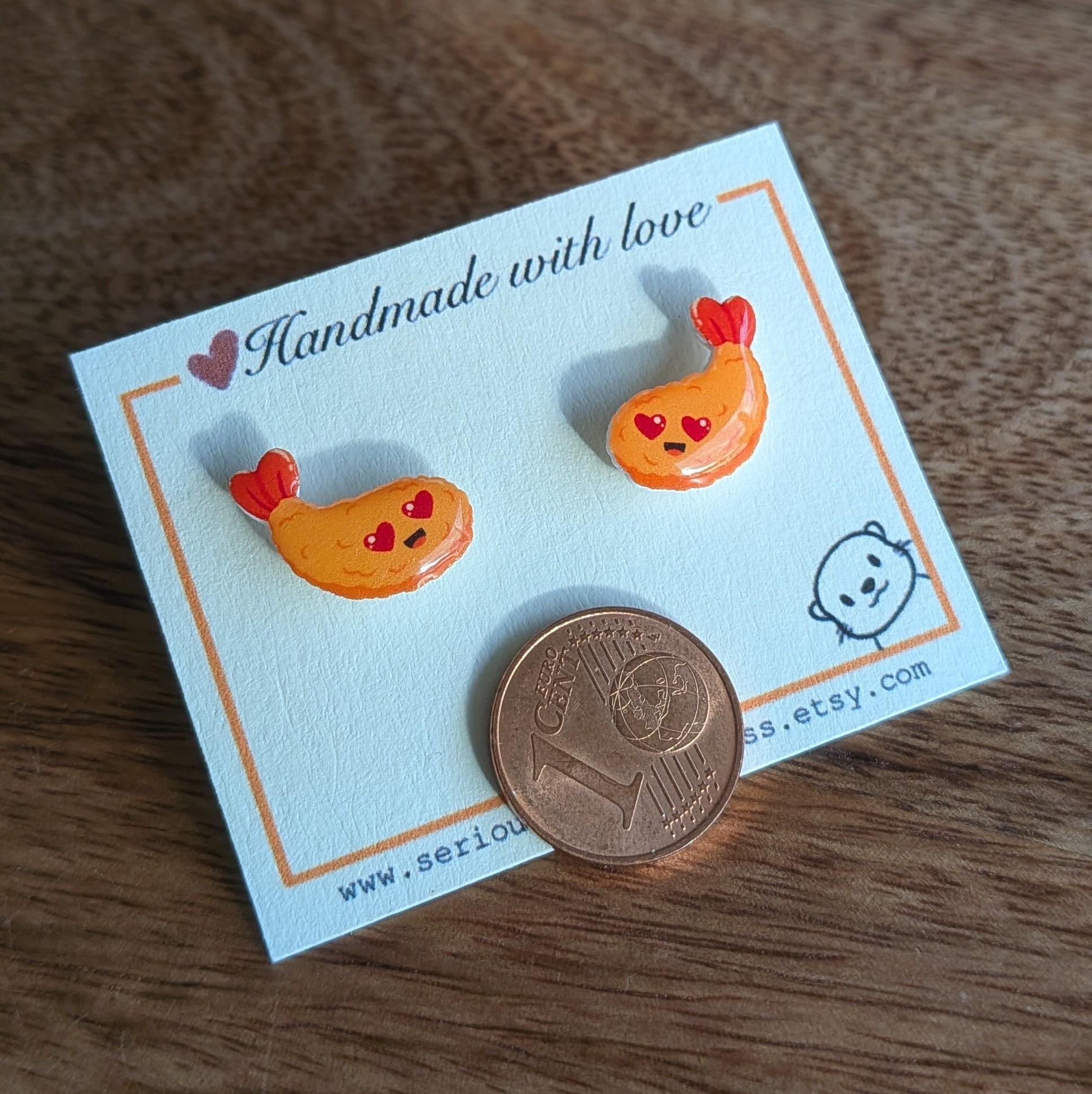 Niedliche Garnelen Ohrstecker aus Edelstahl – perfekt für den täglichen Gebrauch. Die kleinen Tempura Ohrringe sind inspiriert von asiatischem Streetfood und ideal für alle, die Food Jewelry, Kawaii Schmuck oder minimalistische Ohrringe lieben.