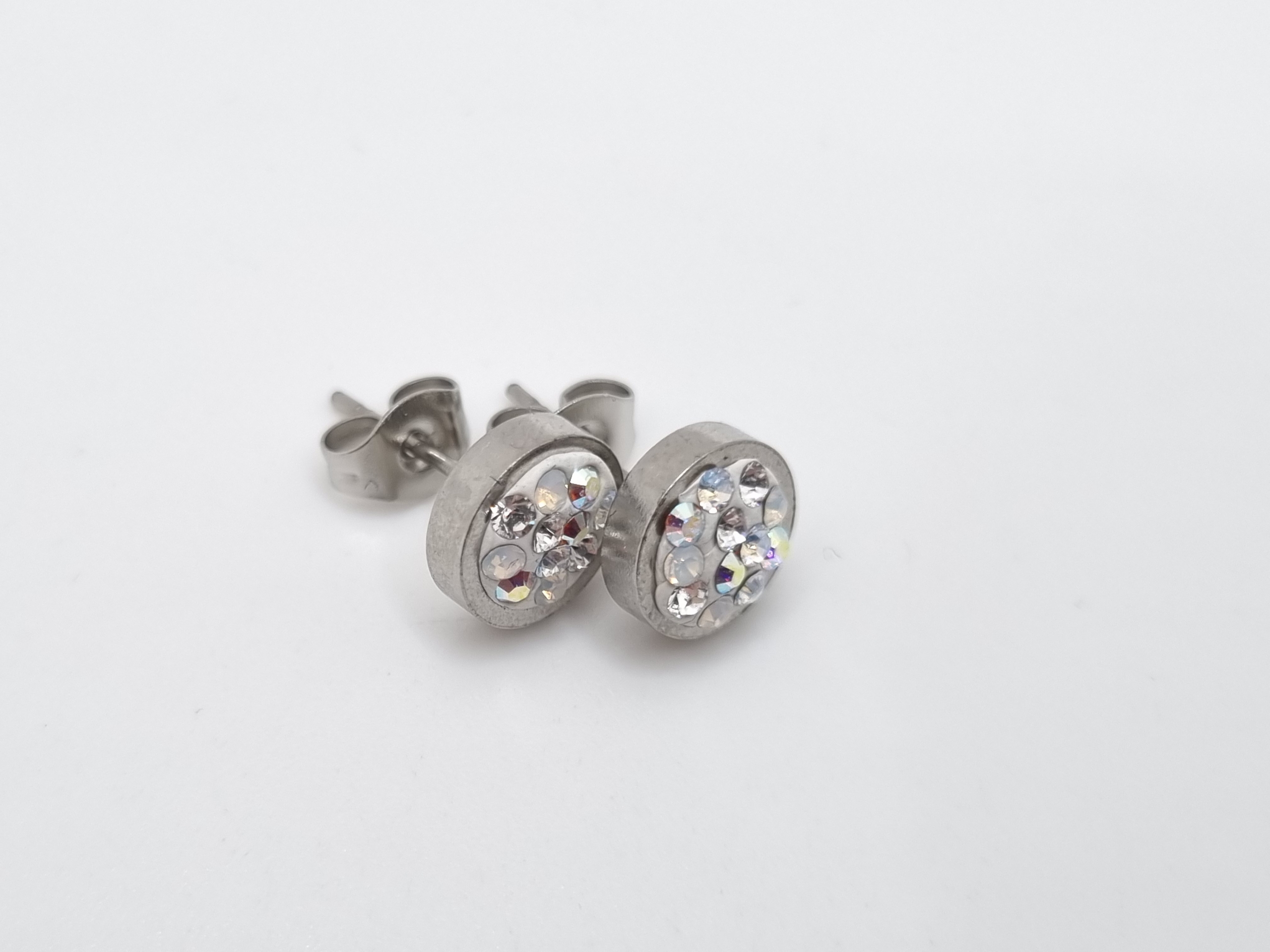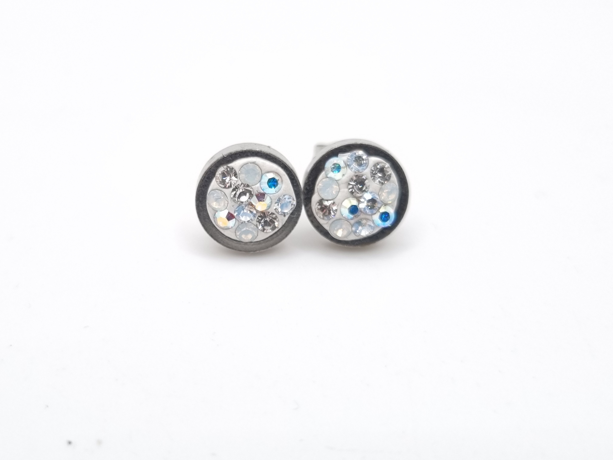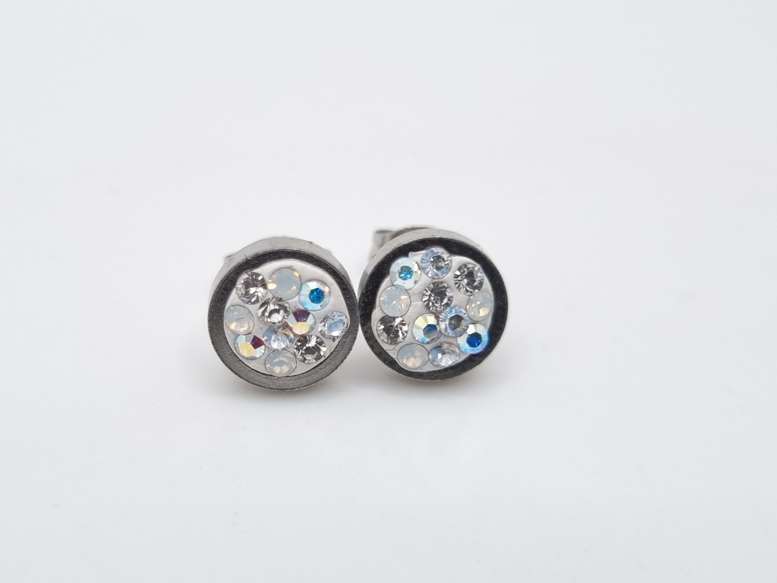 kleine Edelstahlohrstecker verziert mit Swarovski® Chatons in den Farben Crystal, Crystal AB, Crystal Moonlight und White Opal.