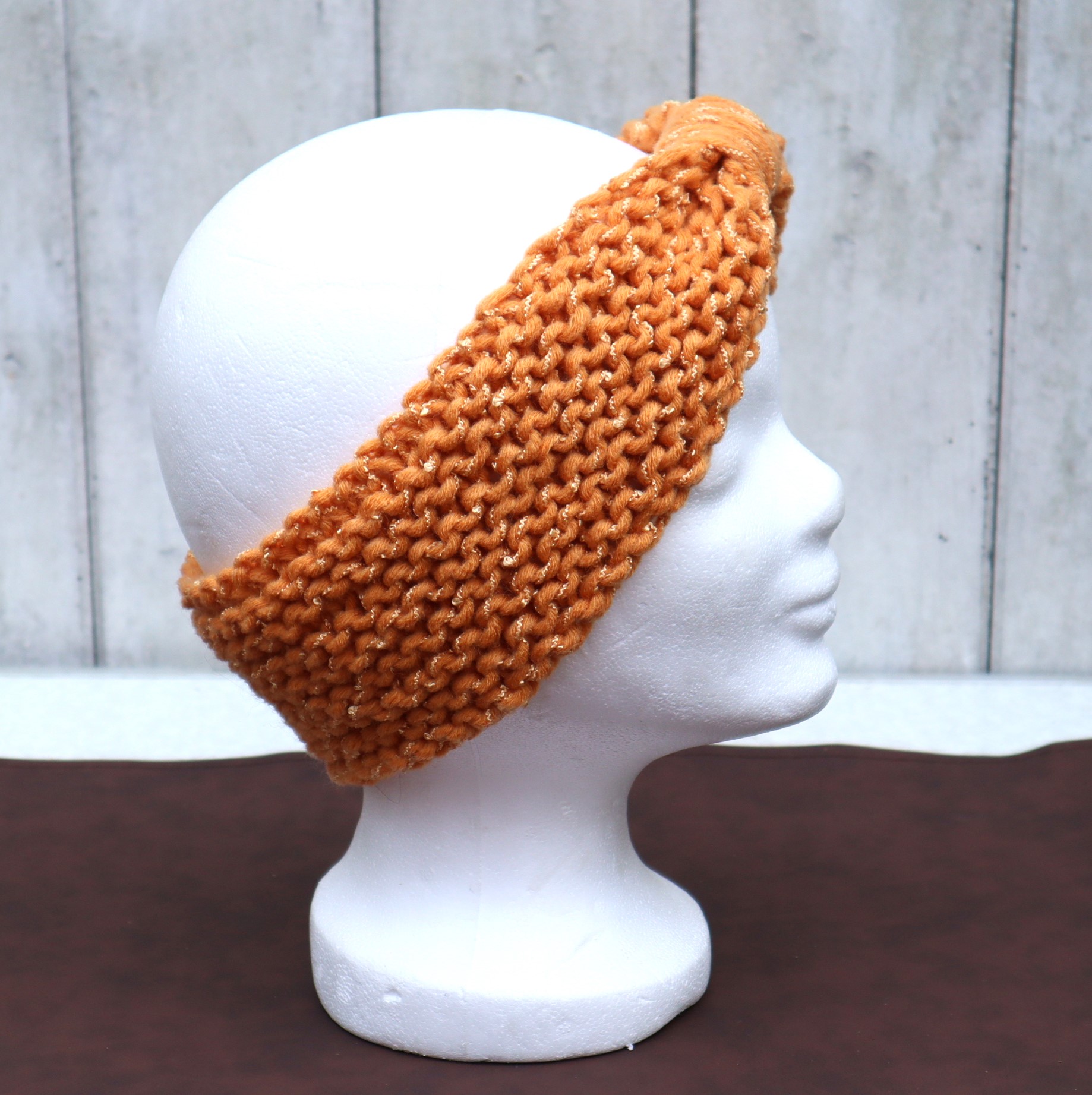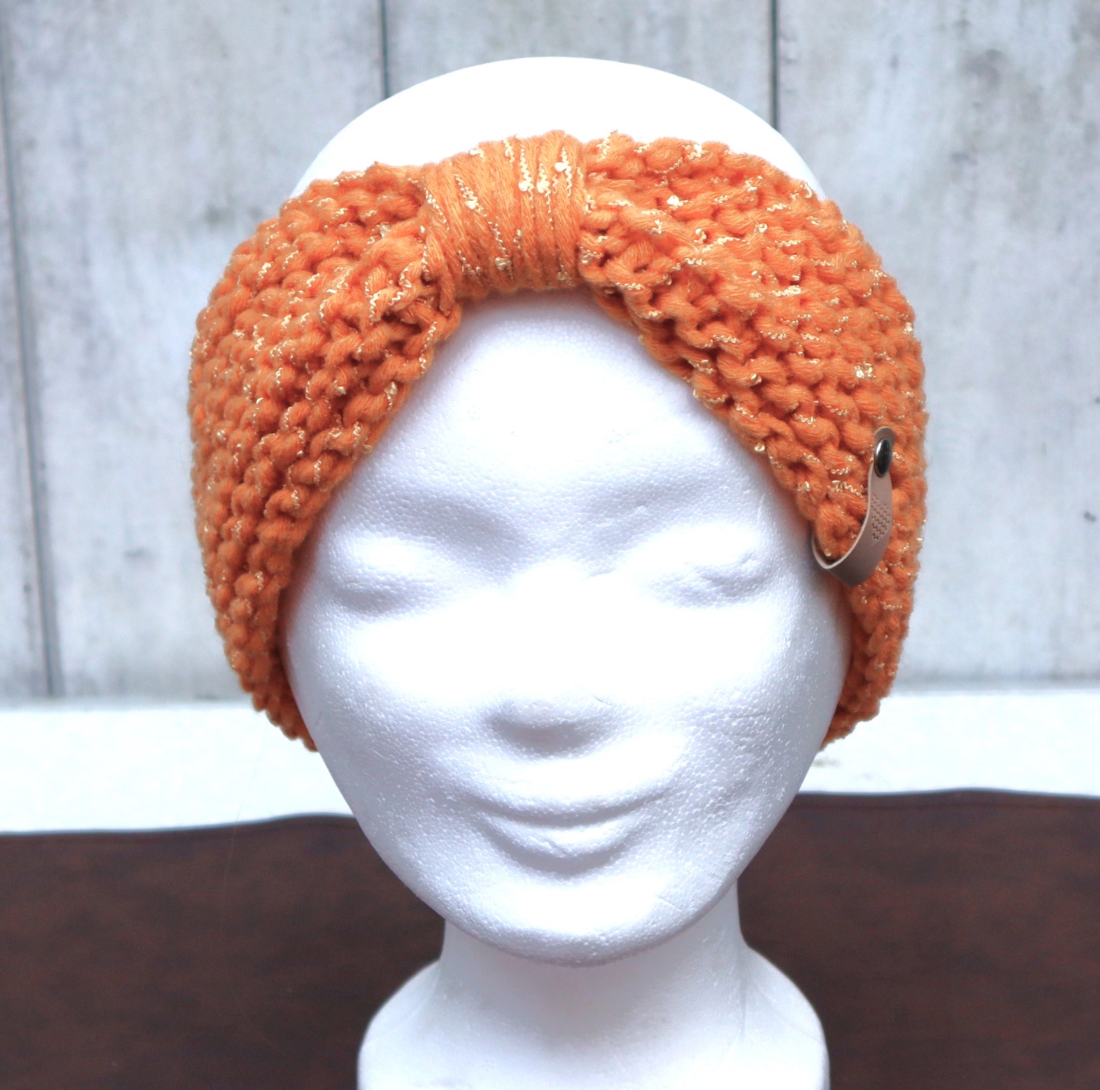 Liebevoll gestrickter Ohrenwärmer in einen Bernsteinfarbton aus einem angenehmen, weichen Mischgarn . Die Vorderseite des Stirnbandes ist gerafft und mit einer Wicklung verziert gefertigt worden, ein raffiniertes Detail für dieses Stück.