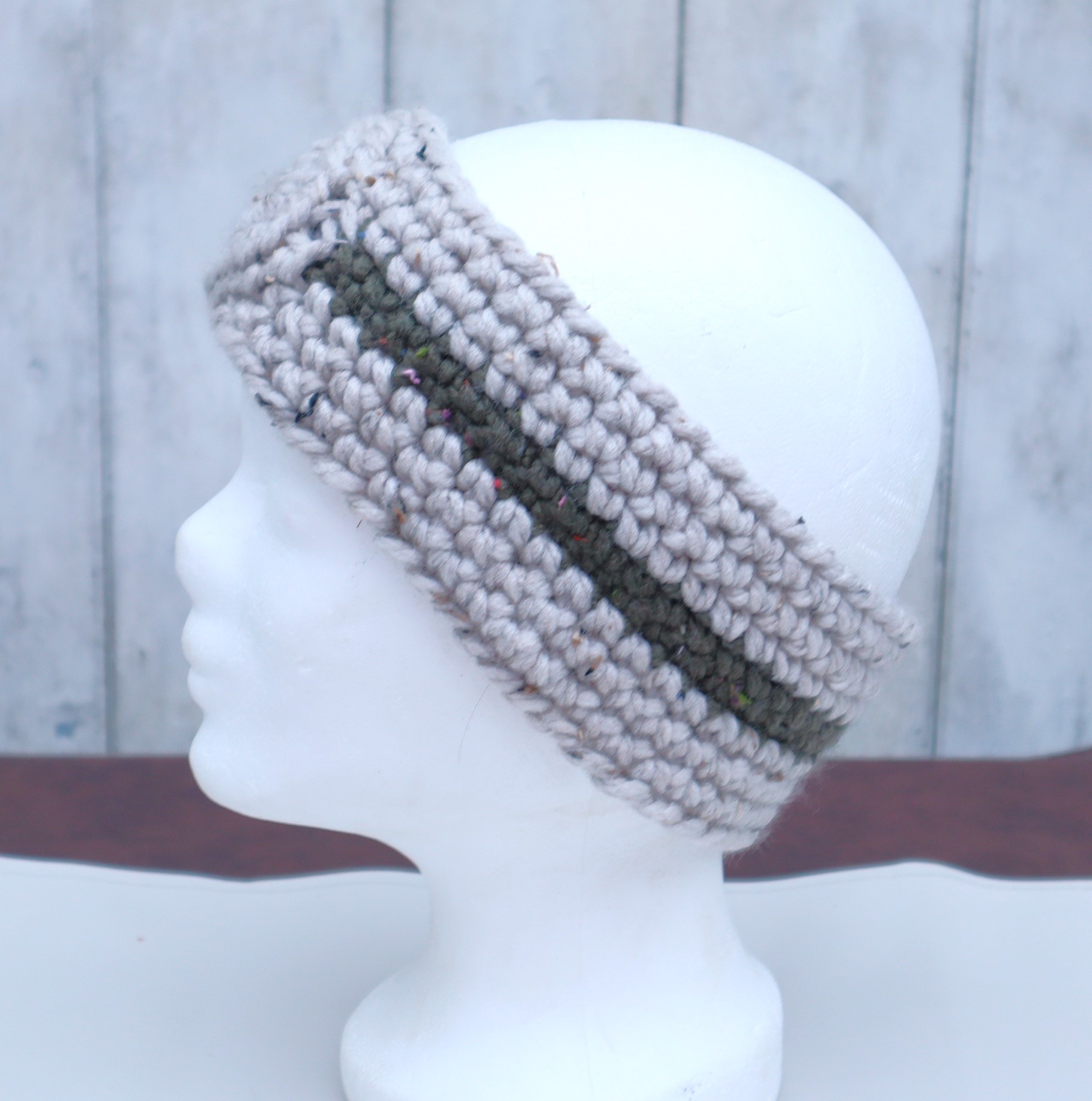 Liebevoll gehäkelter Ohrenwärmer in einem schönen Farbmix Mix aus einem angenehmen, weichen Polyacrylgarn im Tweedlook.