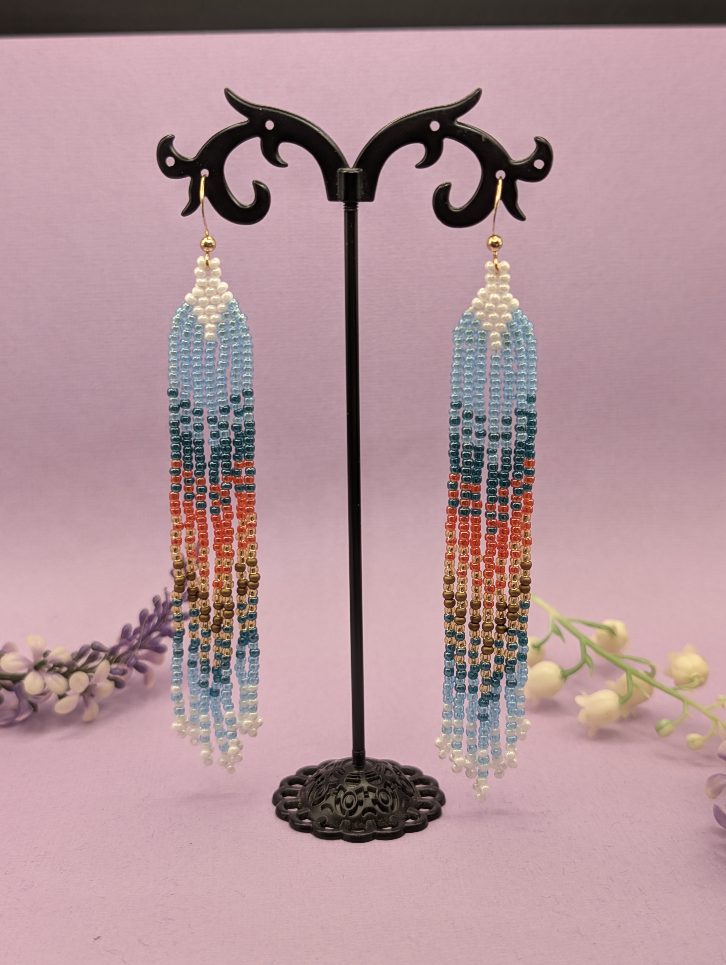 Die feinen Glasperlen sind sorgfältig von Hand aufgefädelt und bilden lange, fließende Fransen, die sich wunderschön bei jeder Bewegung mitbewegen. Perfekt für besondere Anlässe, Festivals oder als stilvolles Statement im Alltag.
