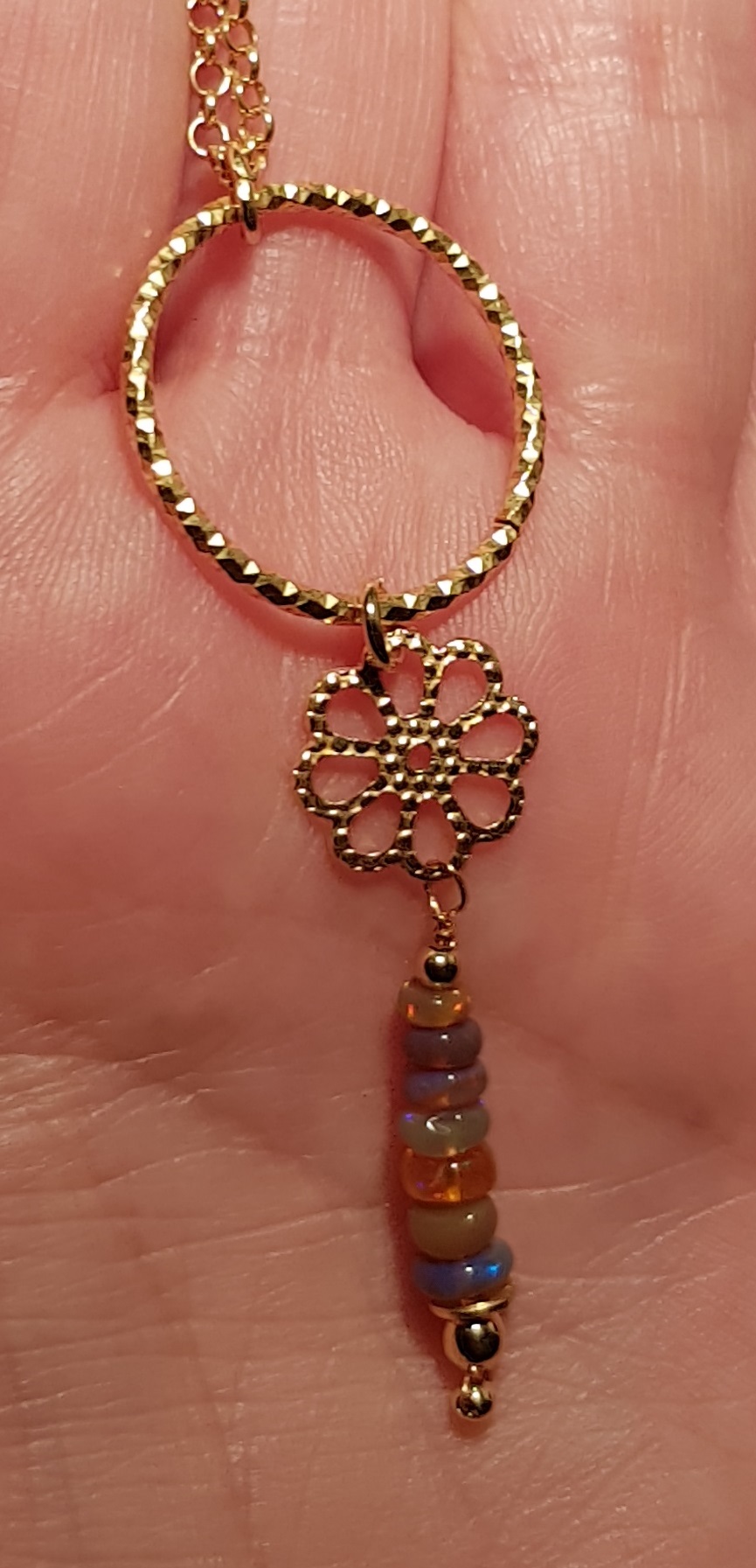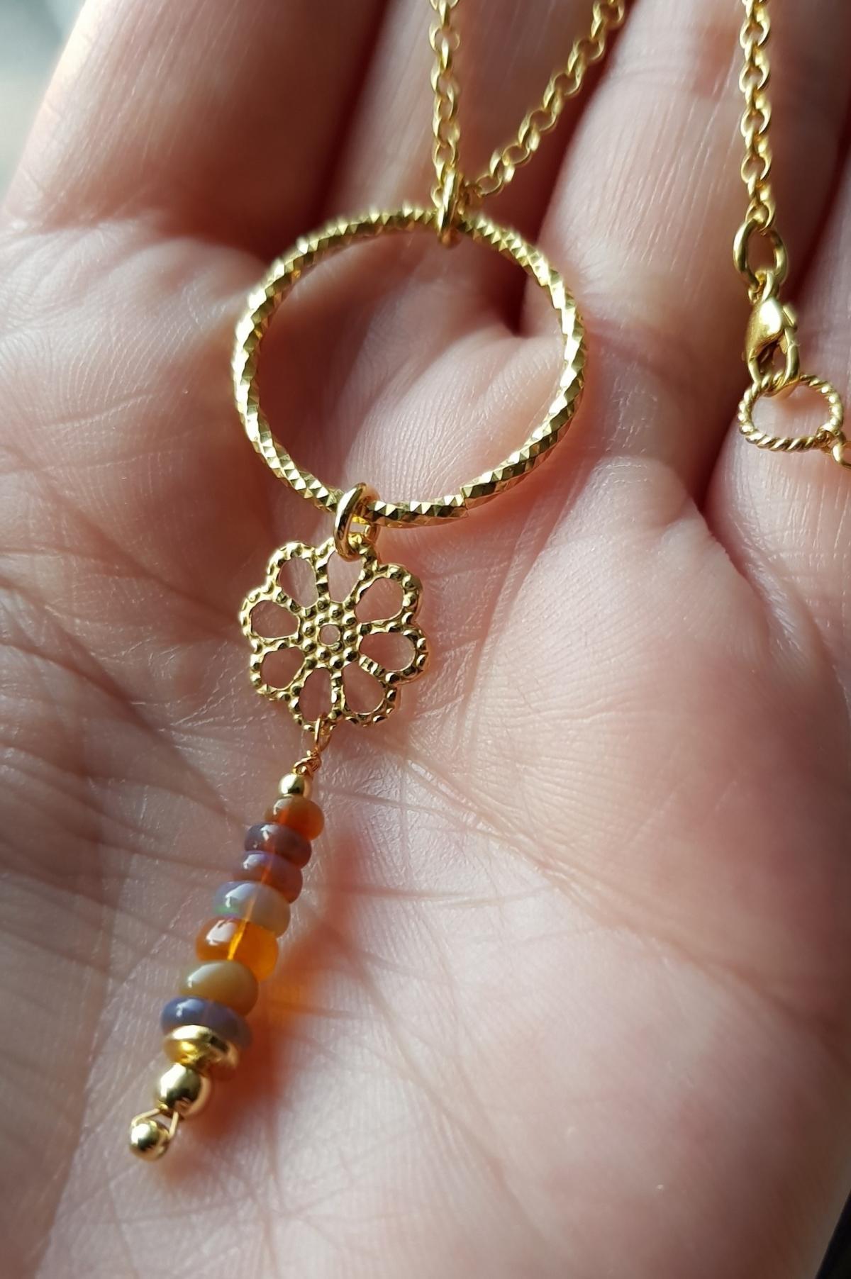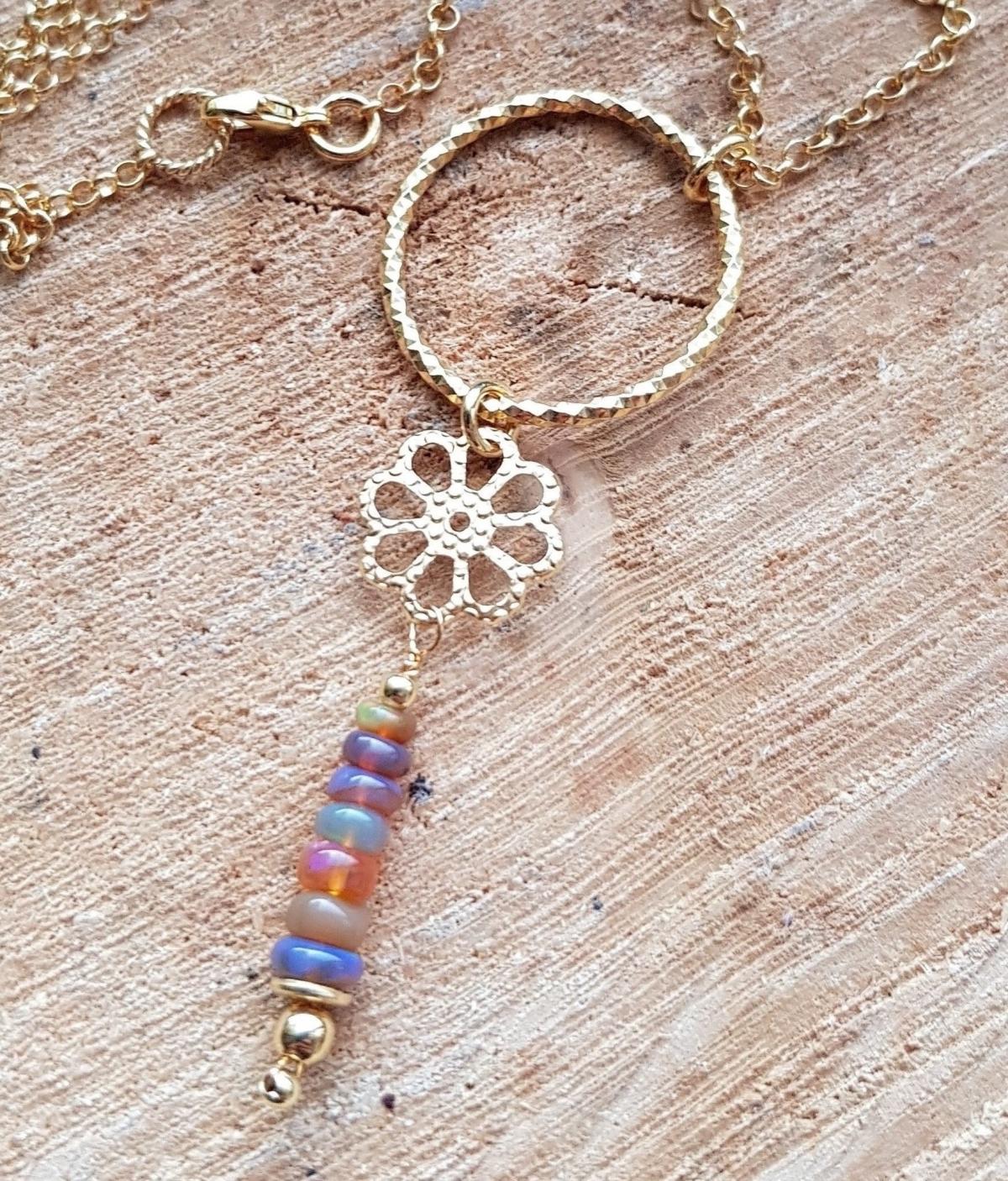 Hier steht eine Opalkette mit einem handgefertigten